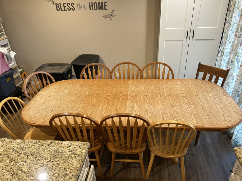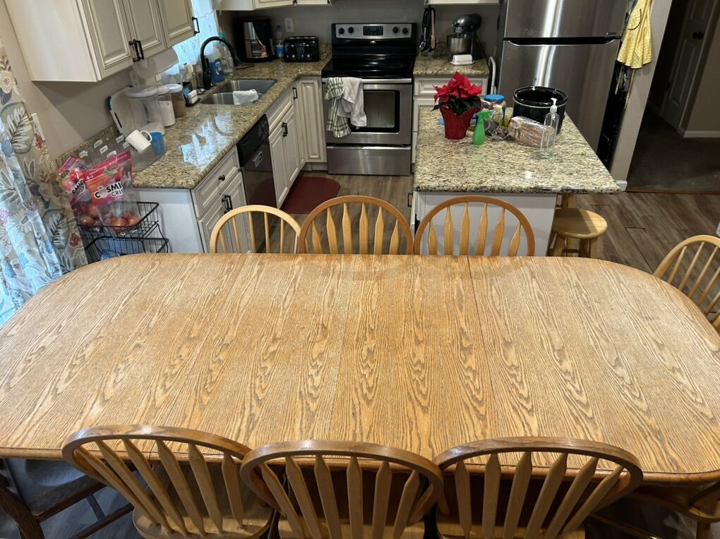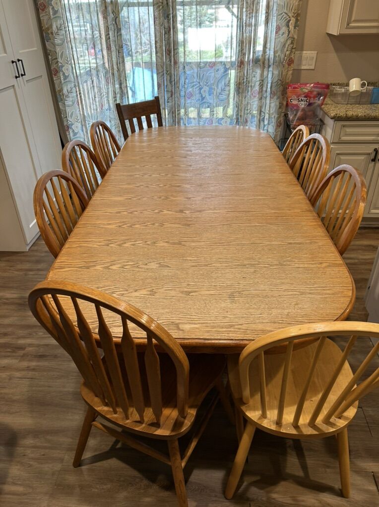 VenmoLarge kitchen table with two leaves. 8’x42”