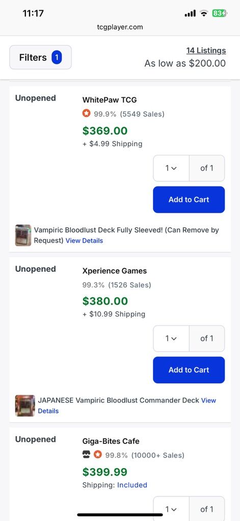 I have a really great condition Vampiric Bloodlust deck in the box. TCG has a Japanese version for $200 but mine is English and I have uploaded other TCG prices for this deck. It would make a great piece for anyone’s collection.