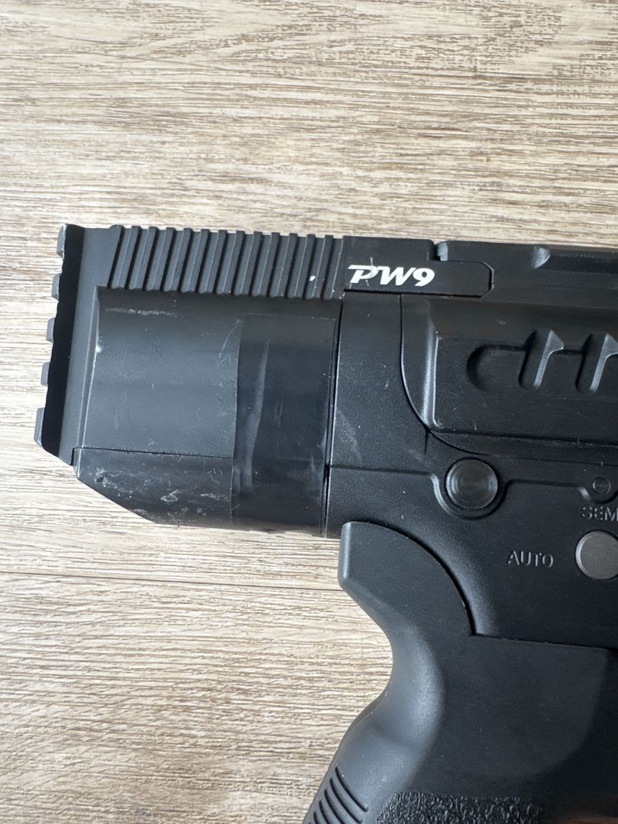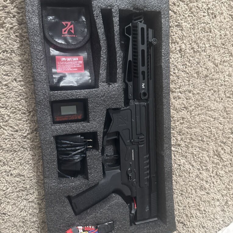 Includes: • Airsoft gun • 1 magazine • Battery compartment works, but we used a small piece of tape to keep the battery snug.