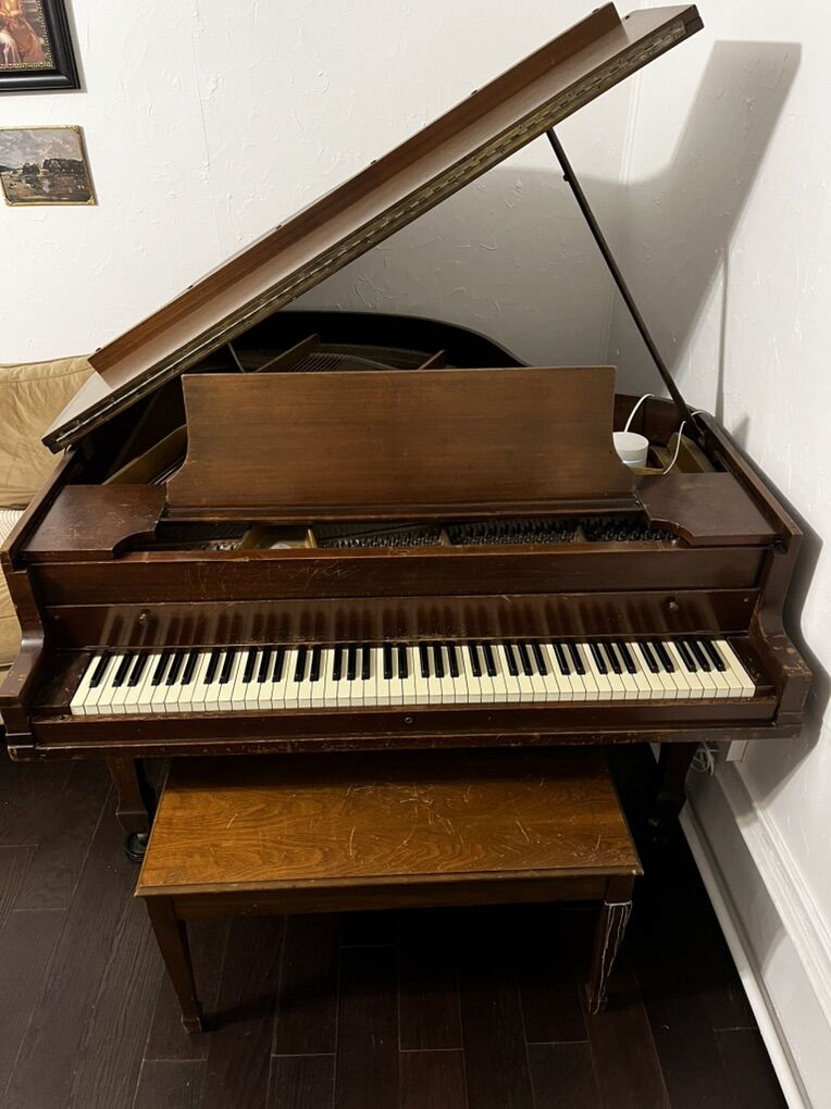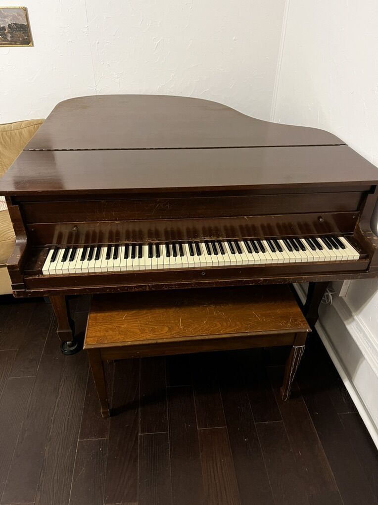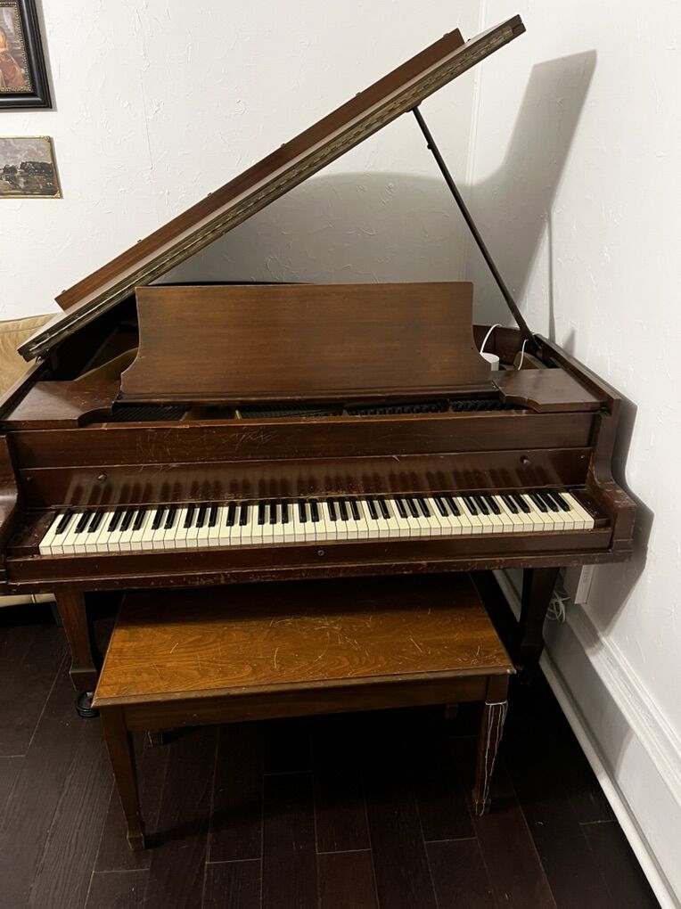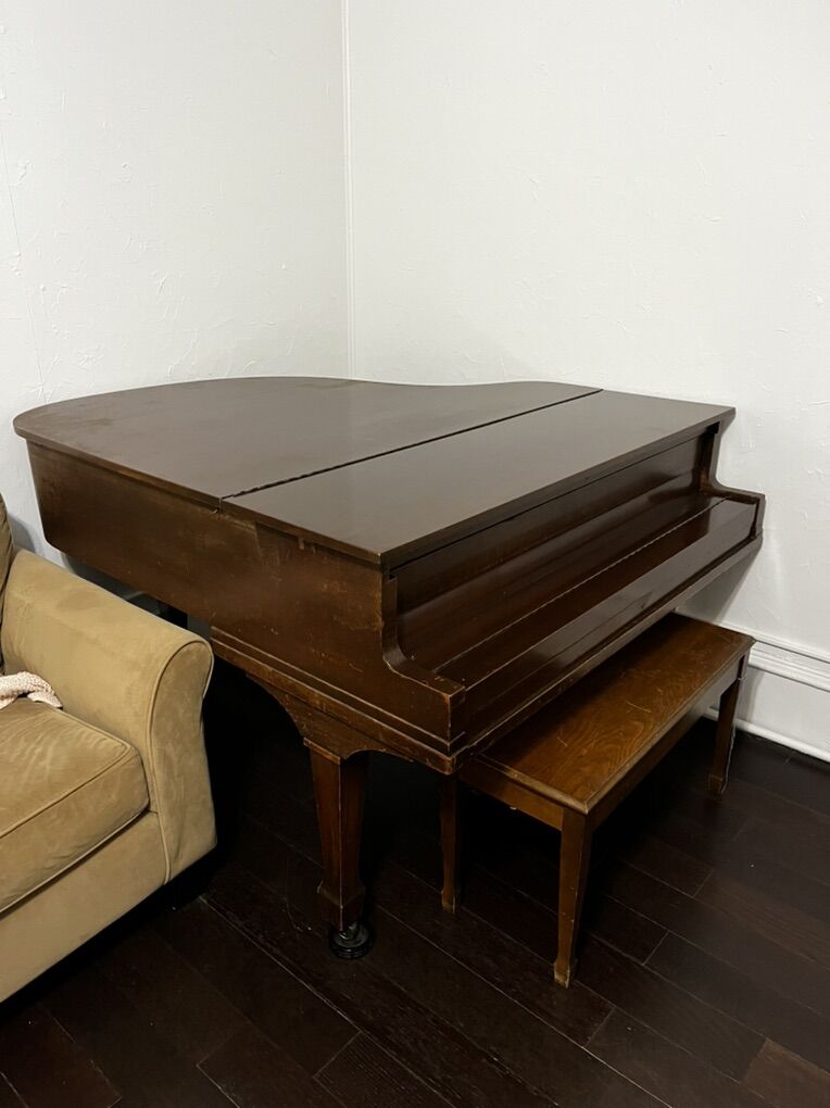 VenmoBaby Grand Piano from circa 1920’s or 30’s, maybe slightly newer. A great old piano to practice on. Has its fair share of scratches and dings as you’d expect on a piano this old. I believe it was manufactured by the Howard company, which to my knowledge made mass-produced American budget alternatives to some of the bigger name pianos. We need the space it is occupying so it is time to let it go to a good home. It’s roughly 5’ 2” in length, and about 57.5 inches in width. You’ll have to arrange pickup and moving. Feel free to message with any questions. Cash payment preferred. Thanks for looking!