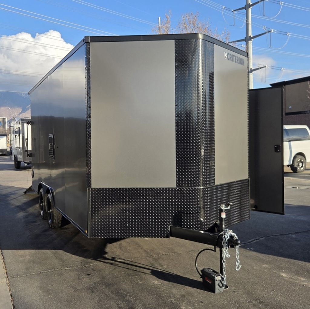 LIMITED TIME $129 A MONTH WITH ZERO DOWN WITH OUR SPECIAL LOCAL CREDIT UNION PARTNER!!! NO PRE PAYMENT-PENALTIES!!! EASY IN-HOUSE APPROVAL!!!!!!! CRITERION UTV Pkg!!! 6 inches added height for an 87 Inch Rear Entry Height, and a 90-inch interior Height!!! Extra Tough Poly Bead Rubber Floor With NUDO/DRYMAX Rubber Backing! Industry Leading .080 PolyCore Aluminum Exterior!!! Rear Spoiler with LED Load Lights! Roof Vent. 6x 5000# Heavy Duty Recessed and back plated D-Rings!!! Drivers Side Side Access Door! Fuel Pass Through Door! Criterion Trailers are Super Premium Steel Framed Trailers with a 3 Year Factory Warranty!!! Come take a look at Criterion to see unparalleled quality!!! 7TA009888