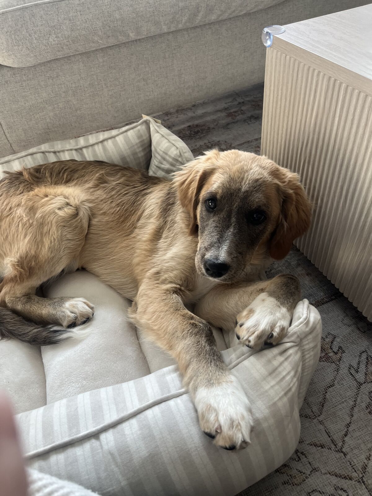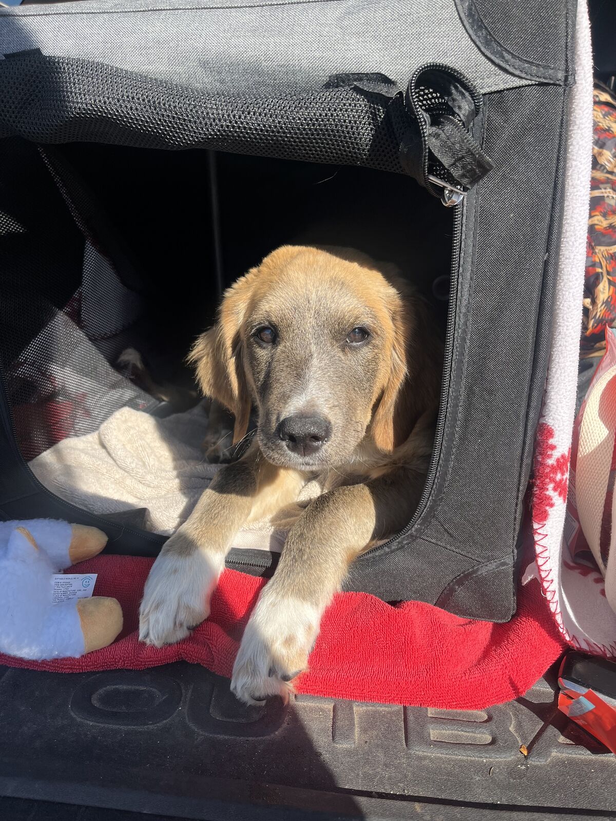 This is Sprout he is THE sweetest pup. He is crate trained and almost fully potty trained! I am a single mom who works in the early morning hours and he jsut isnt getting the attention he needs. Wonderful with my two year old and could use some socialization around other pups. GREAT with kids. Sleeps through the night no crying and dry crate. His dad was 65 mom was 45. Got from a breeder in Scottsadle. I have all the paperwork. Up to date on vaccines, just had rabies shot.