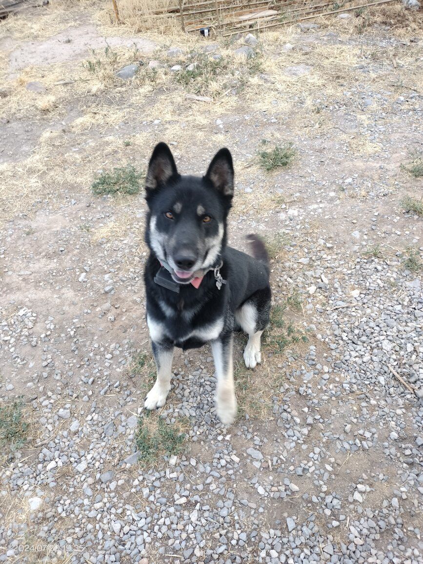 "Chief" is a beautiful male dog. Very friendly and playful. He's like a puppy, even though he's about 4 years old now. He's had his shots and responds well to electric perimeter fences and stays in well. He's been good about keeping the skunks and racoons away from our chickens too. Looking for a good loving home for him. He's been an outside dog his whole life. Knows how to sit and lie down (kind of). I haven't had time to teach him more tricks. But he's a really fun dog to teach and play with. He's good with other dogs too.
