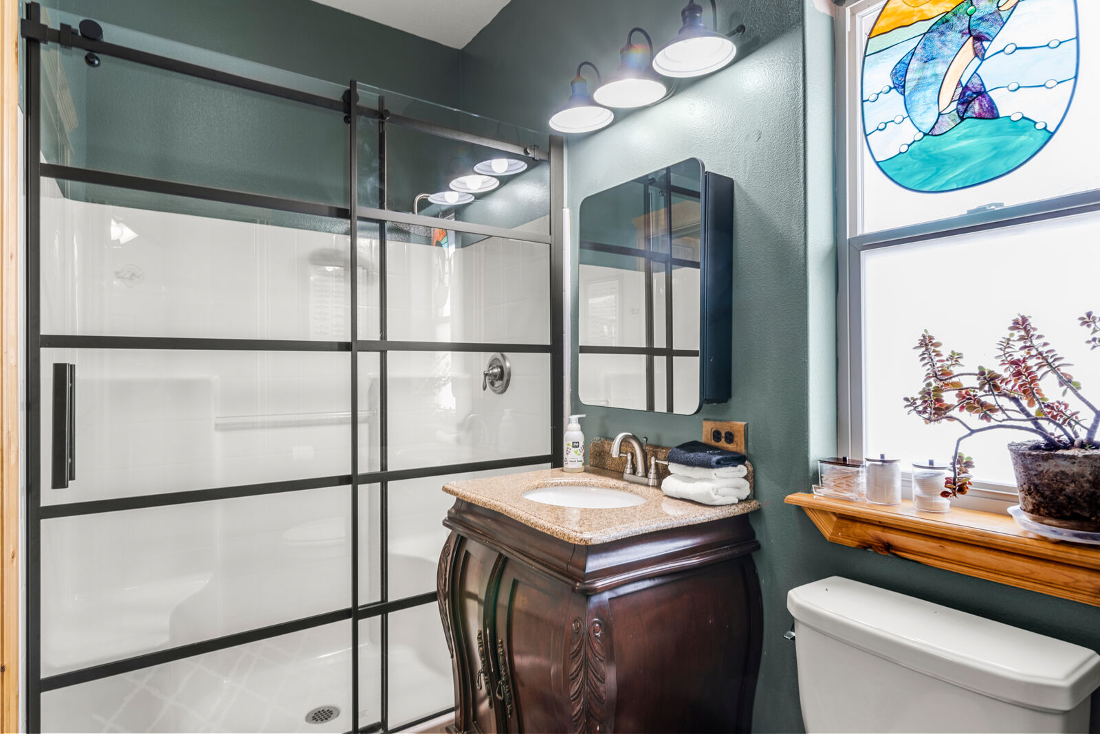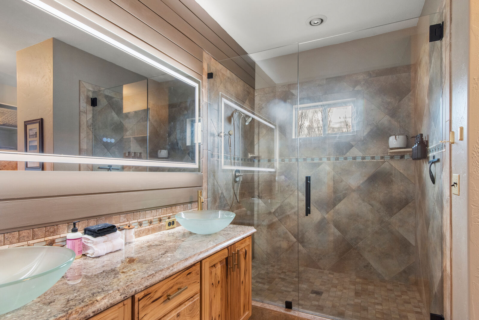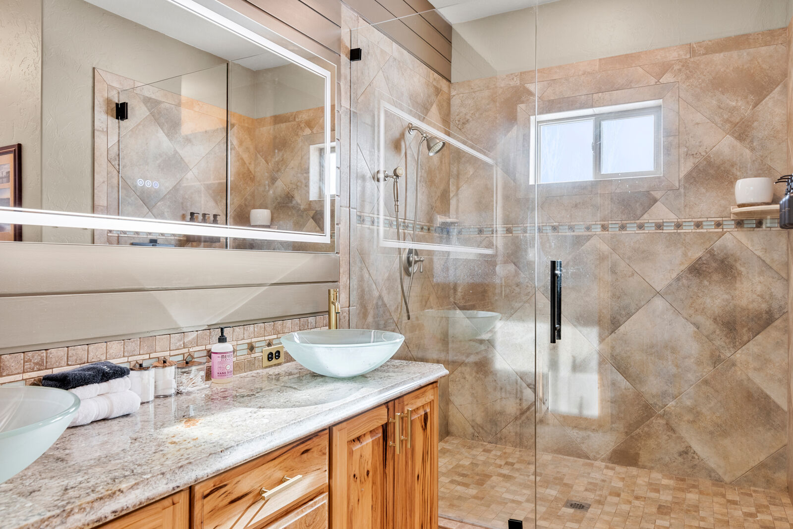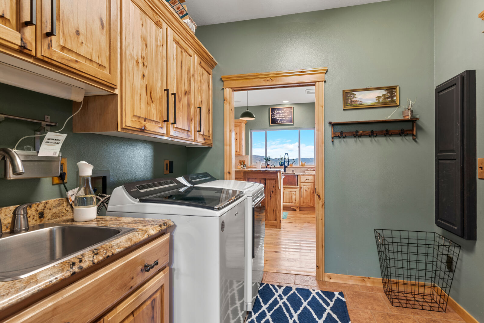 The custom built home is designed to showcase its surroundings, featuring soaring vaulted ceilings, expansive windows, and warm hickory hardwood floors and trim throughout. With 5 bedrooms, 3 bathrooms, a flexible office/exercise space, mudroom, and a spacious three car garage, the layout is ideal for both everyday living and hosting family or guests.