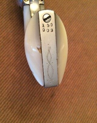 ApplePayBlack powder factory engraved Colt SAA single action revolver. Good mechanics with all 4 clicks, and the bore would rate good to very good. The old holster is in very good to excellent condition for its age. Factory engraved, black powder Colt single action revolver .45 cal, with neat old SK and Co. monogrammed, double loop holster, and pearl grips, shipped in 1894. The gun has a nickel finish, beautiful old pearl grips, and nearly full coverage factory engraving. The engraving is still very nice on this Colt. Good, readable barrel address, patent dates, and caliber marking.