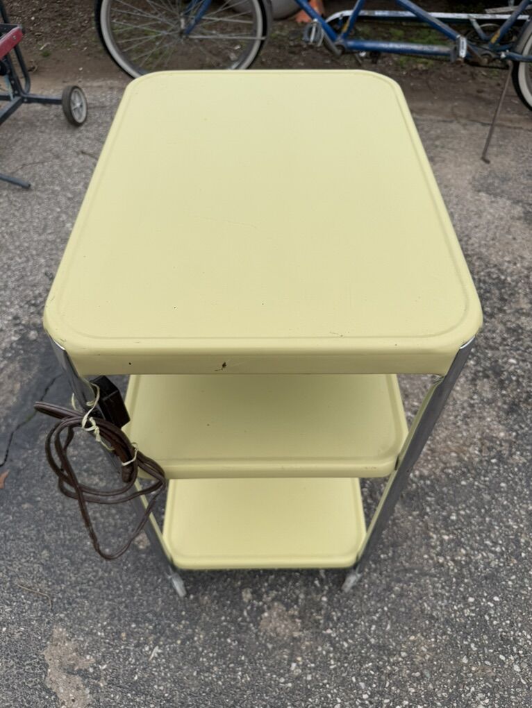 Costco Rolling Tray with 120 volt outlet 30” high. 17” wide Very Good Condition See Pics