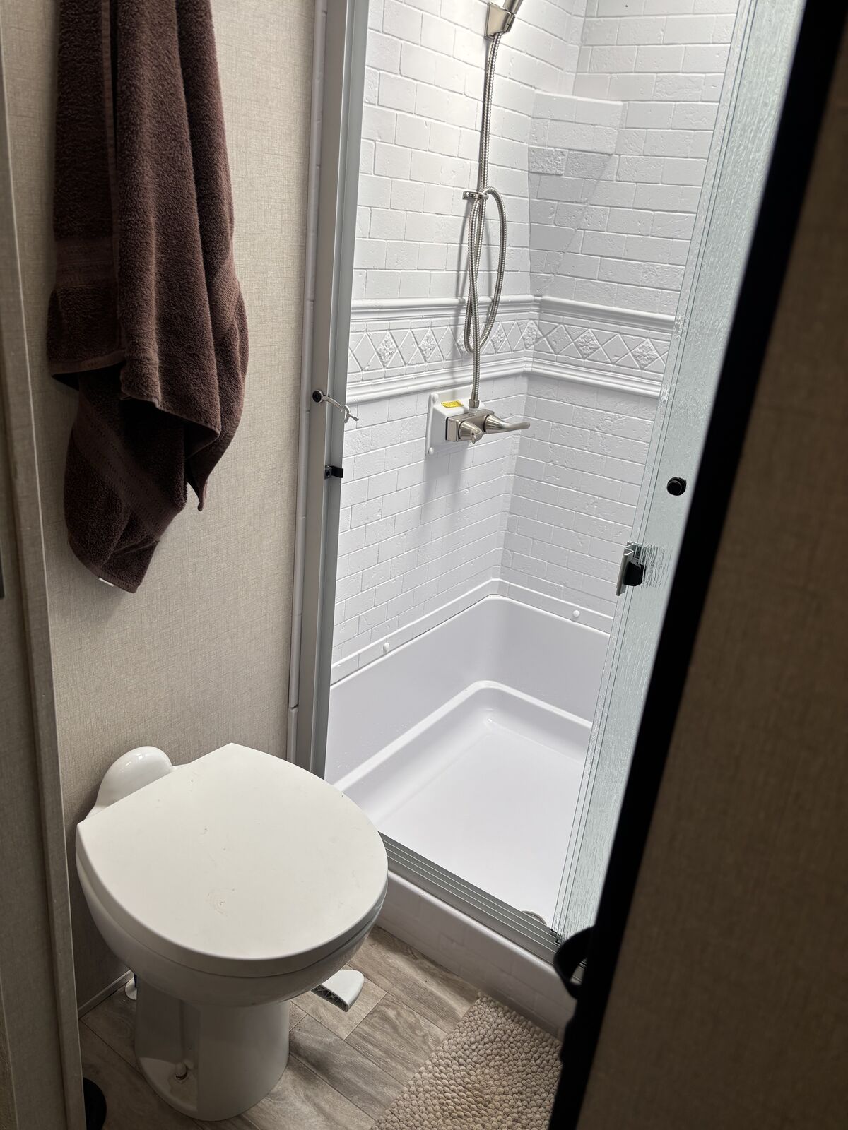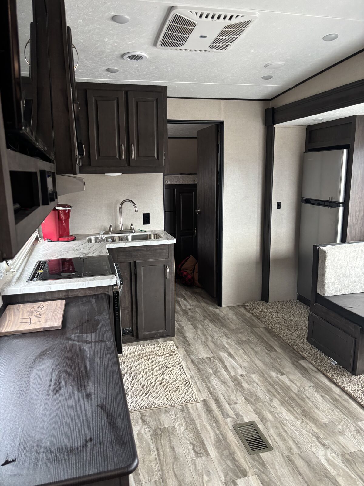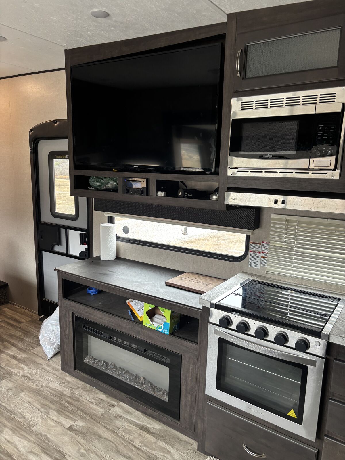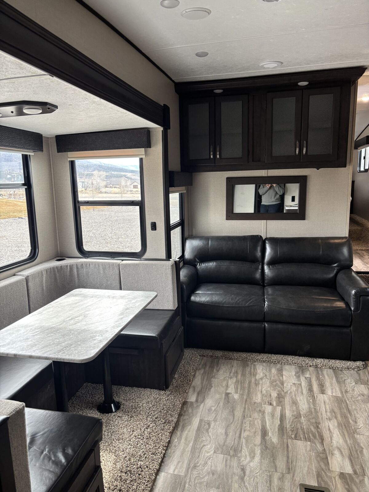 Modern 2021 Forest River Chaparral Lite X fifth wheel trailer. White and black exterior with an awning and plenty of outside storage. Inside has a comfy bedroom with a bed and nightstand. Bathroom has a stand-up shower with glass door, sink with vanity, and toilet. Finances through Cyprus Credit Union at 4.4% interest. They said the loan can be assumed through them. Buyer to verify conditions.