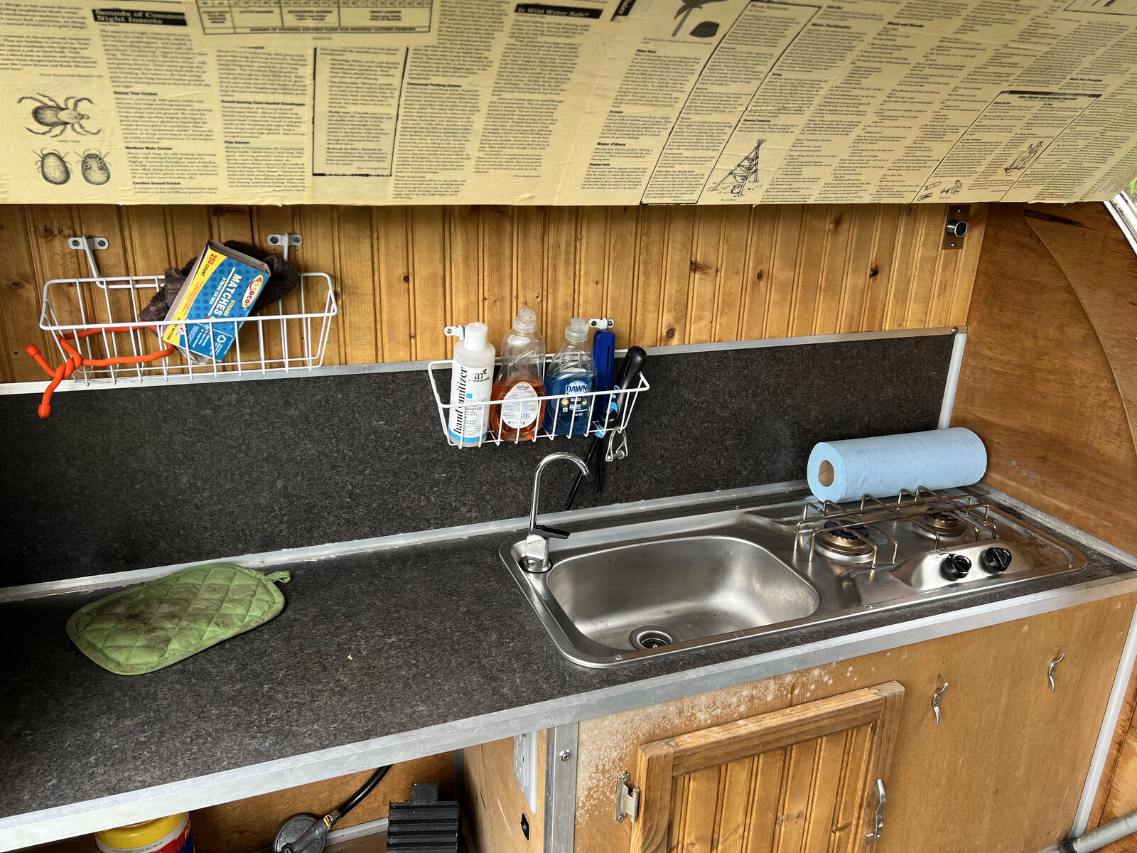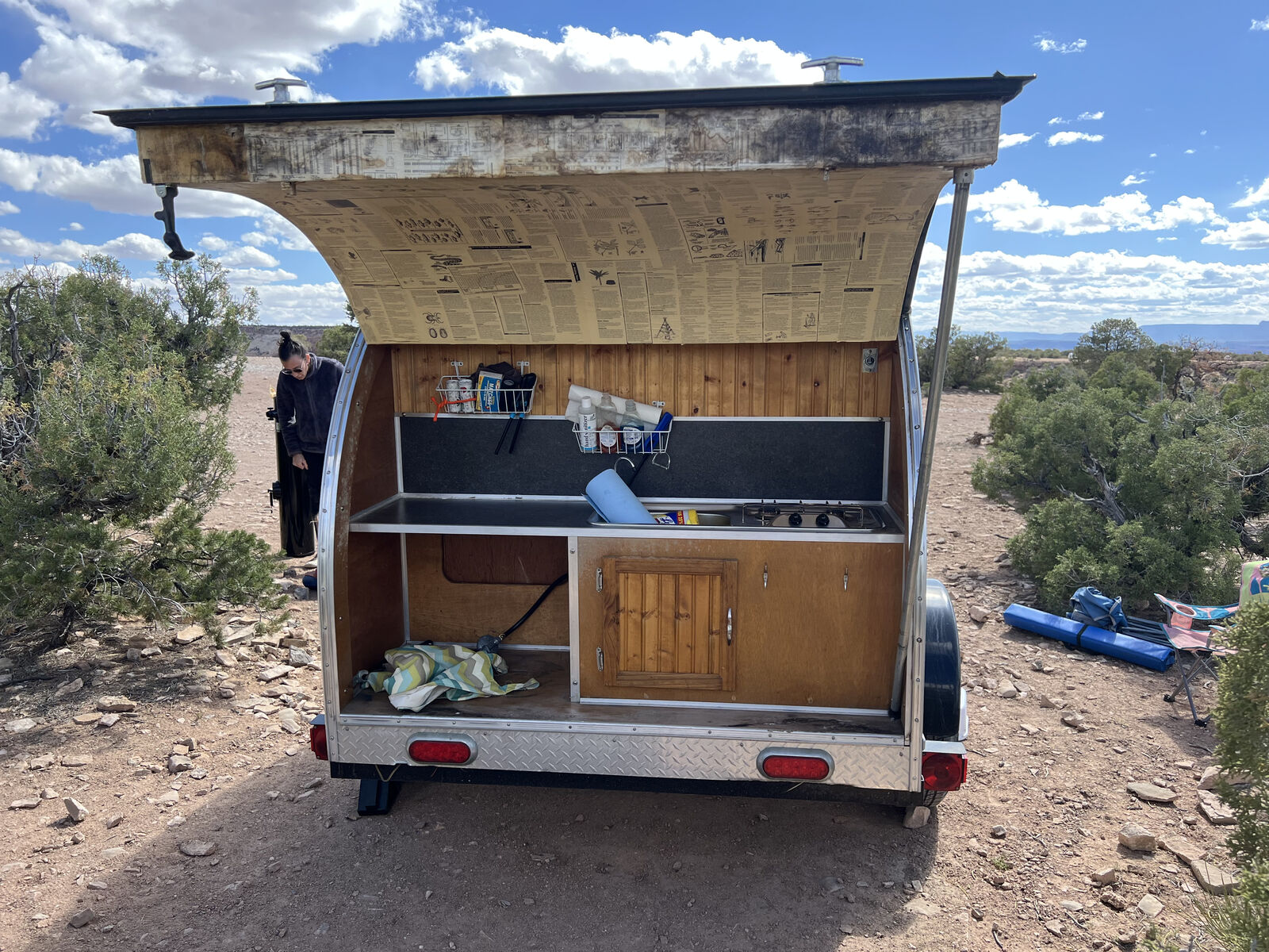 VenmoTeardrop camper. Well built, very comfy, easily towed. It is on a 5x8 Big Bubbas trailer so very solid foundation and handles well off road.