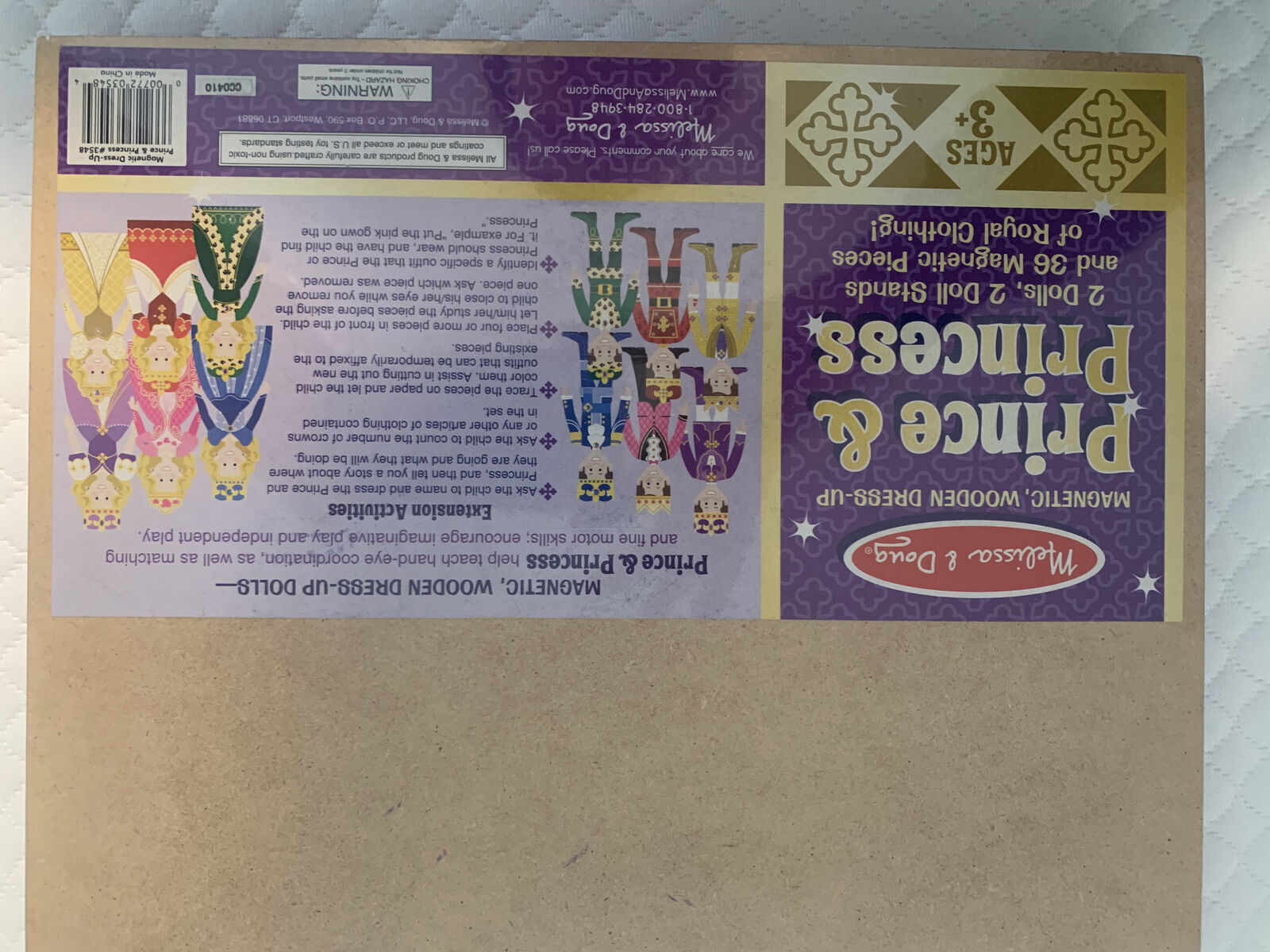 This listing is for a Melissa & Doug magnetic dress-up doll set, 36 wooden pieces, 2 dolls, Prince and Princess. This set is brand new, the outer shrink-wrap packaging has been broken in 2 places but inside the pieces are shrink-wrapped again and this is intact. Please inspect photos. This is a beautiful collectible set. If interested, see our listing for a ballerina set by the same manufacturers.