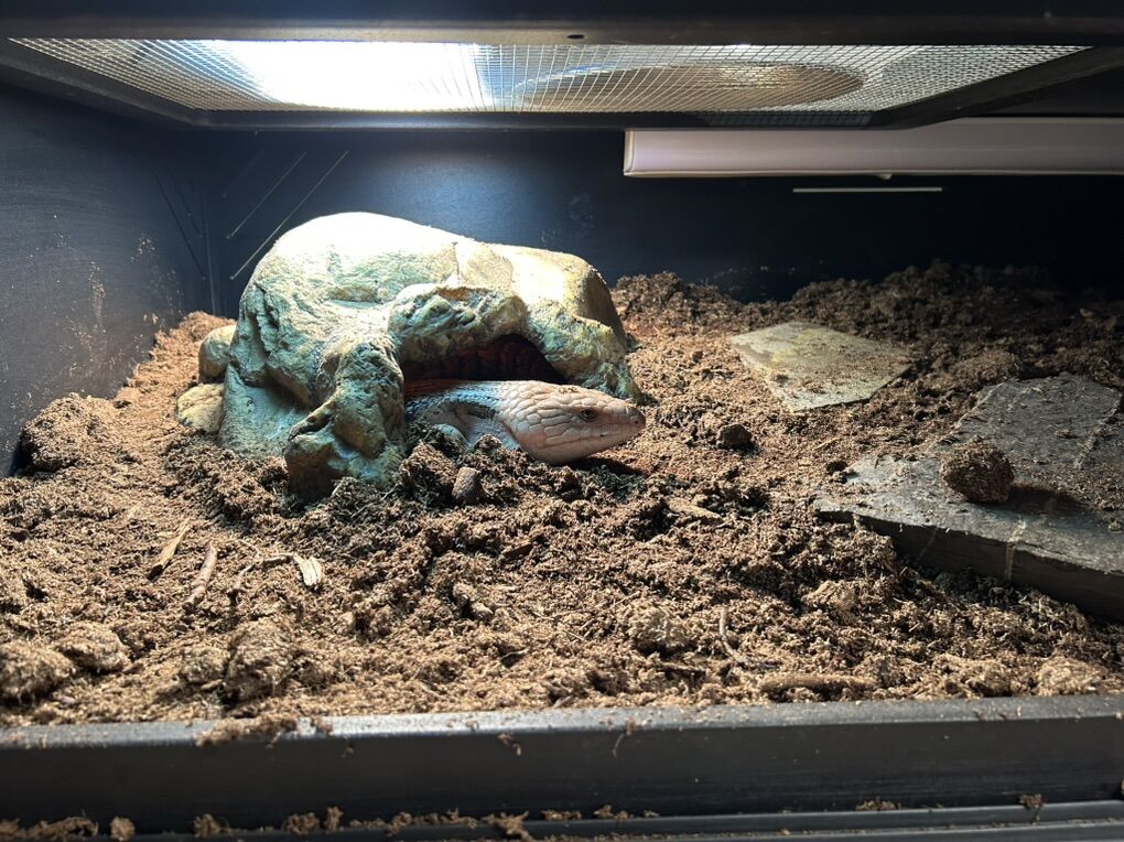 VenmoThis is Steve. He’s a 6 year old we believe male Northern Blue Tongue Skink. He’s extremely friendly and has no issues being handled. 6 years old is still super young for these lizards as they can live 30+ years in captivity. My son has loved him and played with him a ton but is now too involved in High School sports to give Steve the attention he deserves. We’re looking to rehome him plus everything you need to just enjoy him right away. 6’x2’x1’ enclosure Heat and UV light combo Ceramic heat bulb for night Food Extra bedding Etc