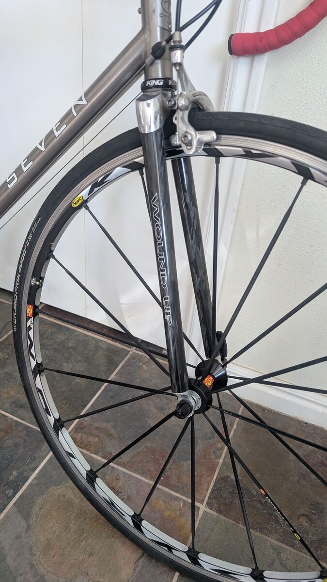 Venmoexclusive Seven Cycles complete bike. Built with Campy Chorus 10 speed, with wound up carbon fork Mavic Ksyrium wheels,almost 20 years old but still a super bike 56 cm top tubec to c. Includes a spare pair of pirelli clinchers.