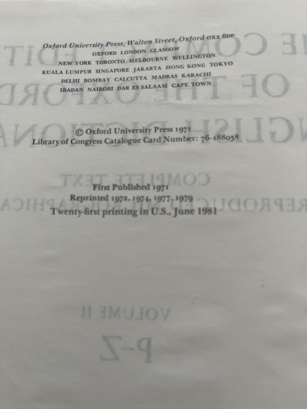 VenmoThe Compact Edition of the Oxford English Dictionary, 2-Volume Set, With Supplement and Bibliography Included in Volume 2. Complete Text Reproduced Micrographically. In Slipcase with Bausch & Lomb magnifying glass. Volume I: A-O. Volume II: P-Z, Supplement, and Bibliography. Dark blue hardcovers and slipcase. Oxford University Press, 1981, 21st printing.
