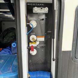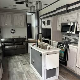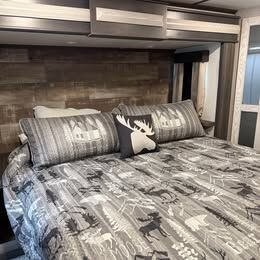 Montana, 350BH 5th wheel. Excellent condition, 4 season with tank heaters. 55 gallon fresh water tank. Bunkhouse with 2 full beds, couch that folds out and 2 electric recliners. King bed in master. 3 slides, new tires, solar panels, walk through bathroom, central vacuum. Washer and dryer ready, accent lighting throughout. 2 awnings, huge storage compartments underneath. Upgraded rear hitch.