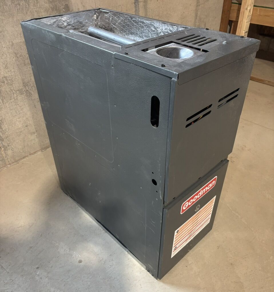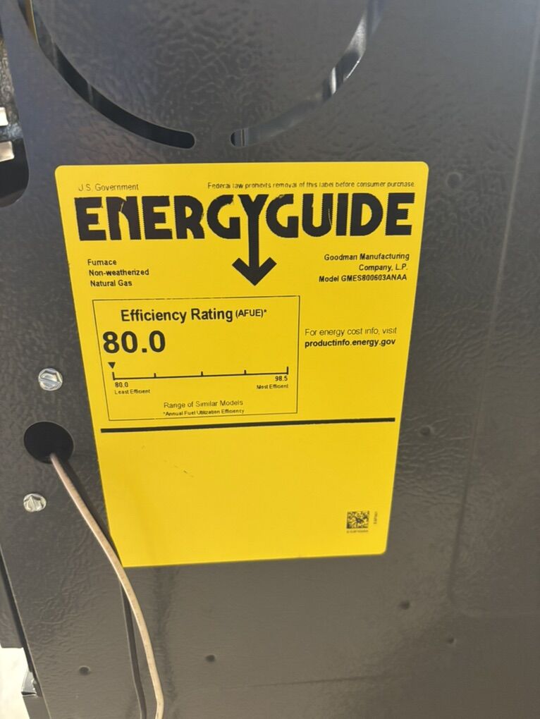 Description- 60,000 BTU 80% AFUS single stage, multi speed, natural gas furnace. *Although this item is brand new, it is out of the box and there are a few minor dings or scratches from shipping and handling, but it has never been installed. See photos for more product information and specifications.