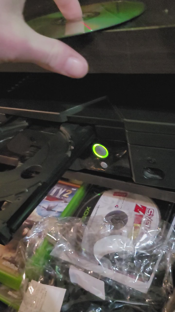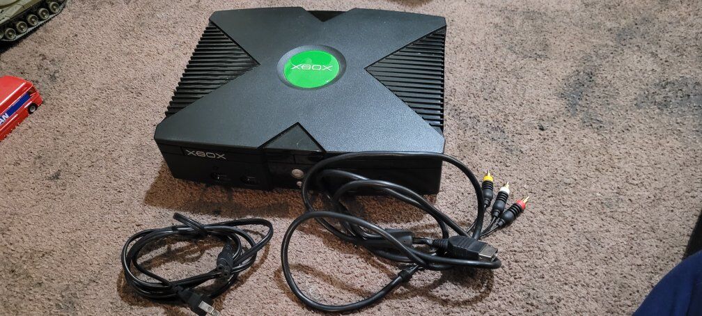 Venmothis xbox is in very good condition, pretty clean inside and out, this does have 4 controllers, memory cards, old wifi cable, TV remote, an AV to HDMI converter so you can play on a flat screen, and 38 games included. the only problem this xbox has is pretty common on this model, the Disc tray will get stuck so you need to lightly slap the top and it should pop it open. this console was made in 2005.