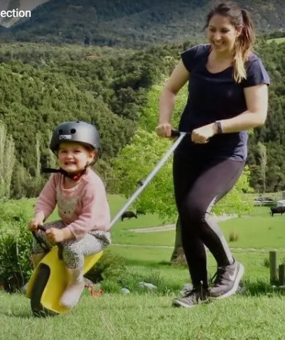 GooglePayThis Mountain Buggy Unirider was awesome for our 2-3 year old, but he's outgrown it now. The toddler sits on the comfy seat and holds onto the padded grip, while an adult uses the handles to push and help balance as you go around. I used this to hike all sorts of trails, including rocky and steep ones, and it did great. You manuever the kid like you would a mountain bike, and the handle setup gives you lots of stability and control to keep the kiddo safe. The unirider is in great condition, no issues or problems.