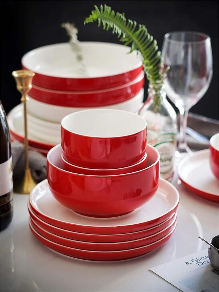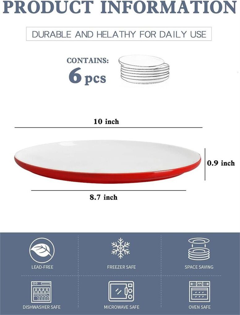 Red/White Porcelain dinner plates 10in - Set of 6