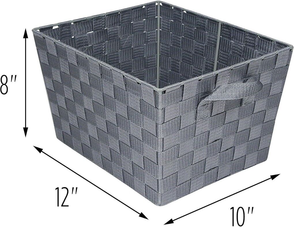 Honey-Can-Do 5-piece of baskets are constructed of durable and easy-to-clean strapping At Dimensions: 12” L x 10” W x 8H, they are large enough for your household essentials but Still fit in a closet or on a shelf.
