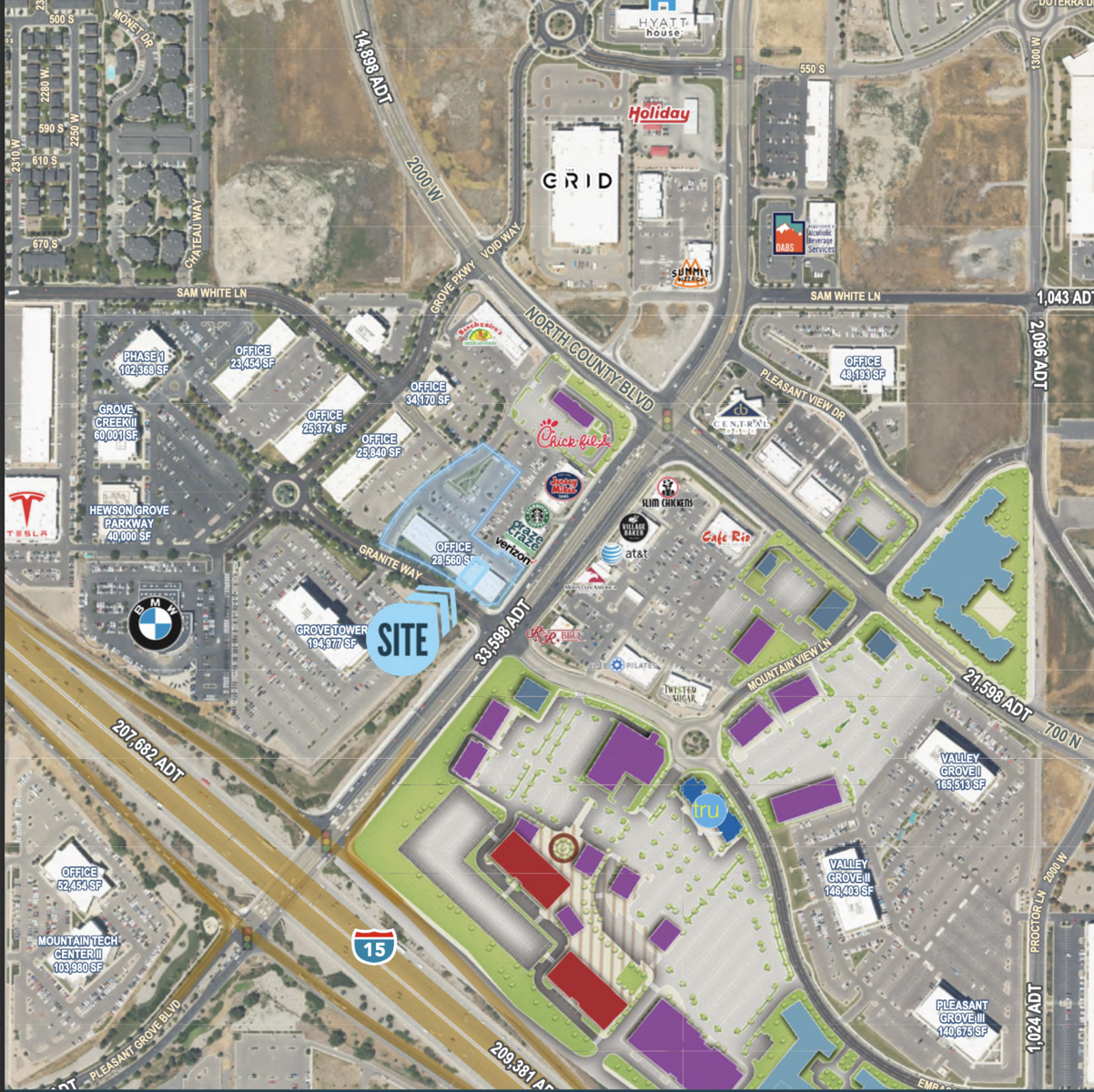 Prime location near I-15, Chick-fil-A, Starbucks, BMW, Tesla, and Valley Grove retail.