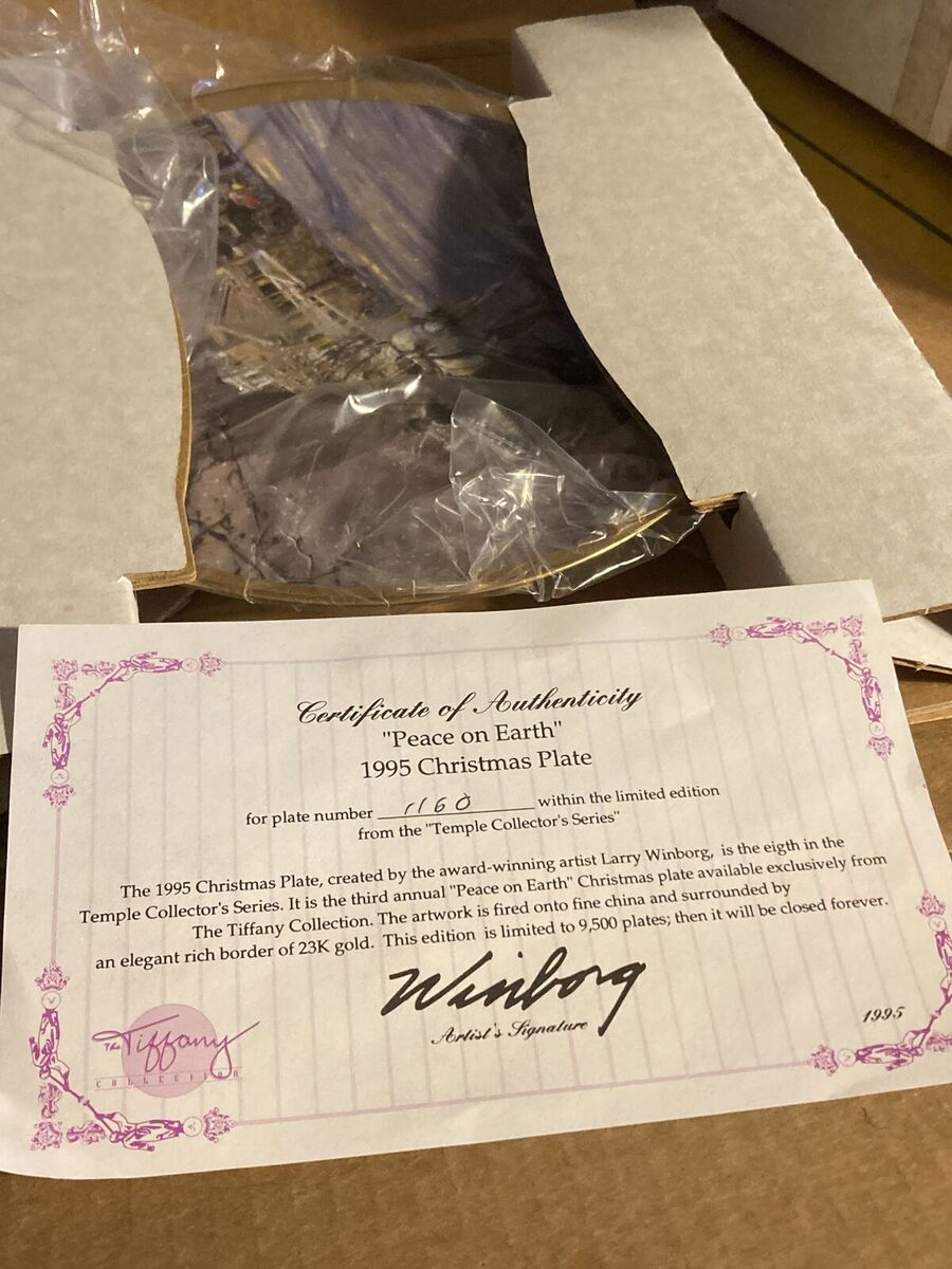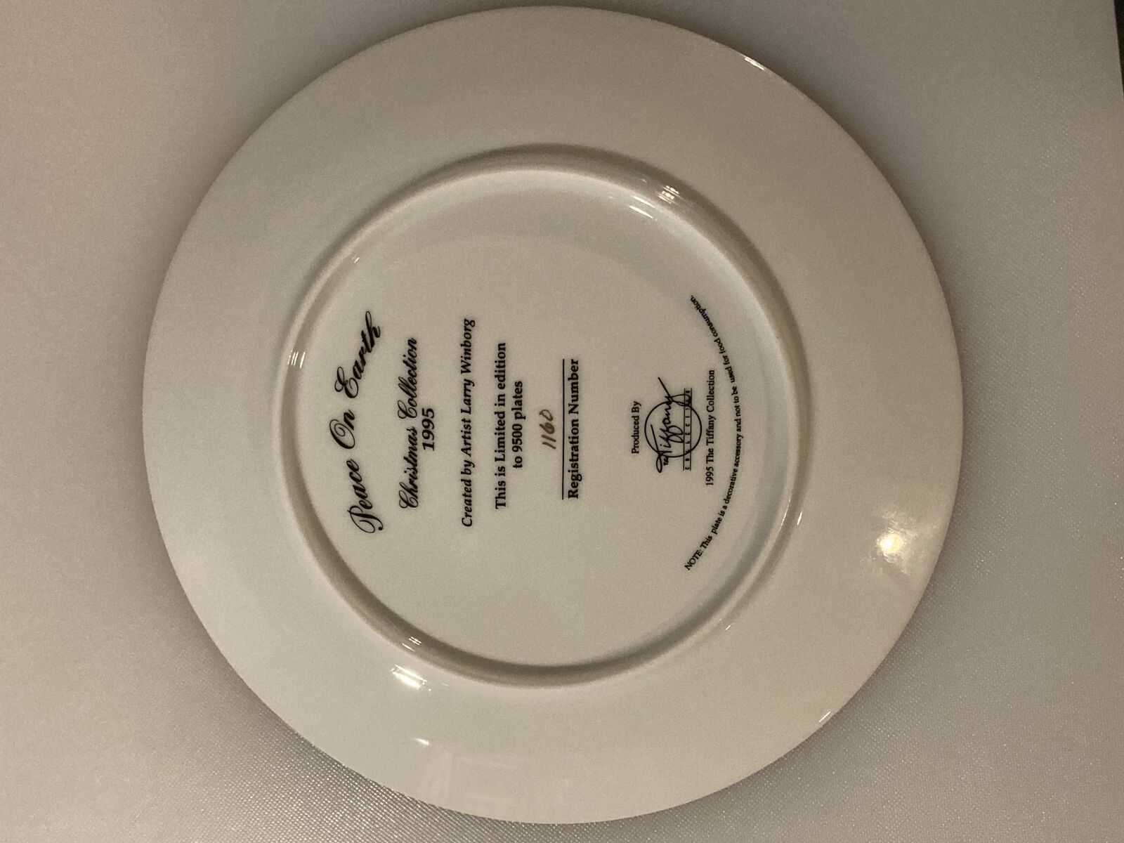 ZelleA limited edition collector plate from Christmas Collection 1995 ** by The Tiffany Collection: "PEACE ON EARTH" by award-winning** artist Larry Winborg.