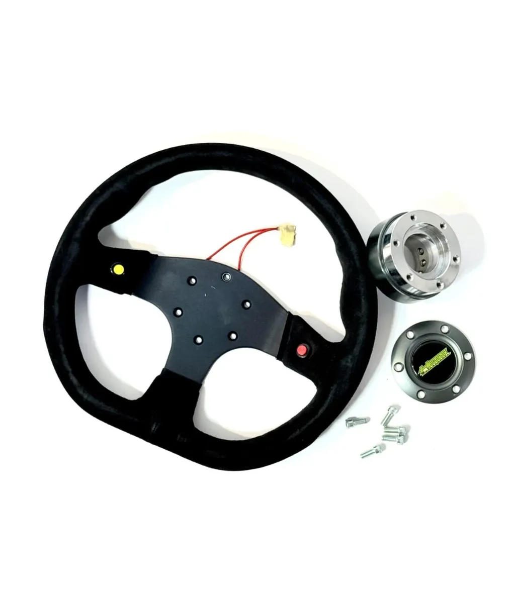 Sport Line Racing Steering Wheel - Runner 2000 - 330mm (12.99 inches) - Black Suede Leather - Two Push Button Horn (Yellow / Red) - Black Spokes - Part # 20200/S