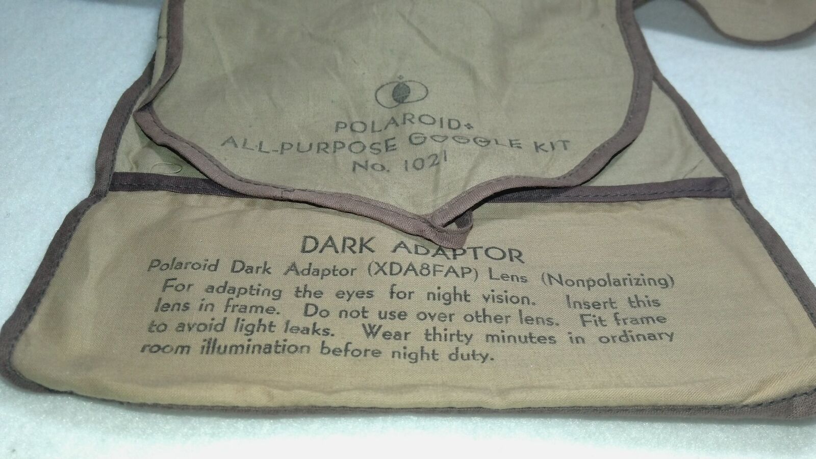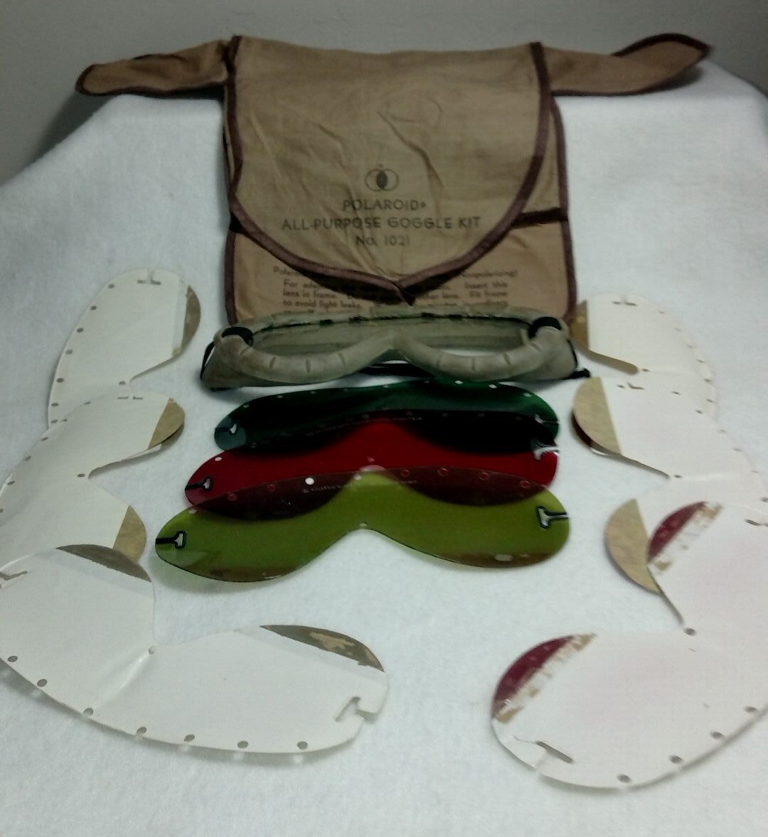 This is an original WWII-era Polaroid All Purpose Goggle Kit No. 1021, complete with its original marked pouch.