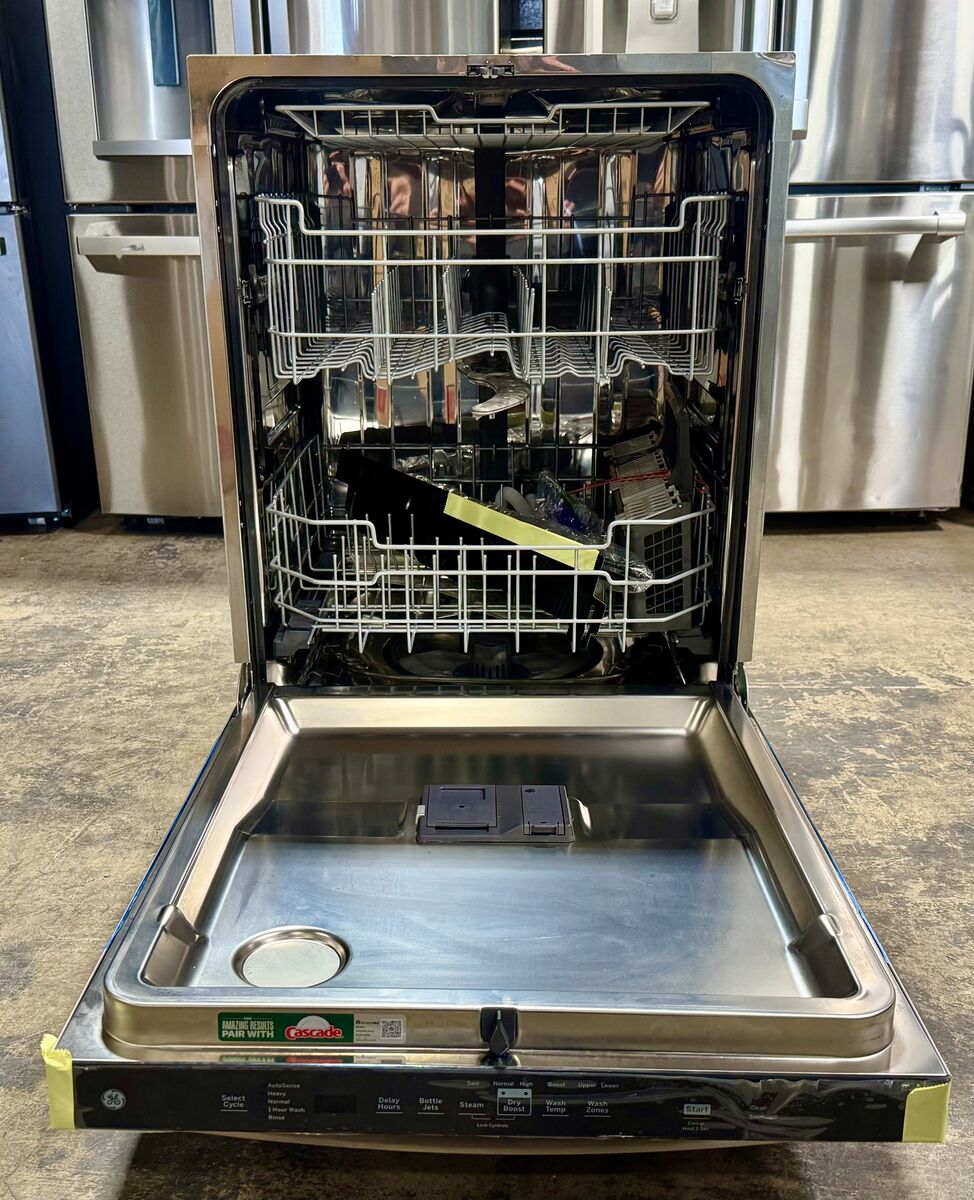 GE 24 Inch Fully Integrated Dishwasher with 16 Place Settings, 47 dBA, 5 Wash Cycles, Full 3rd Rack, Dry Boost™, Steam+Sani, 4 Bottle Wash Jets, and NSF Certified: Fingerprint Resistant Stainless