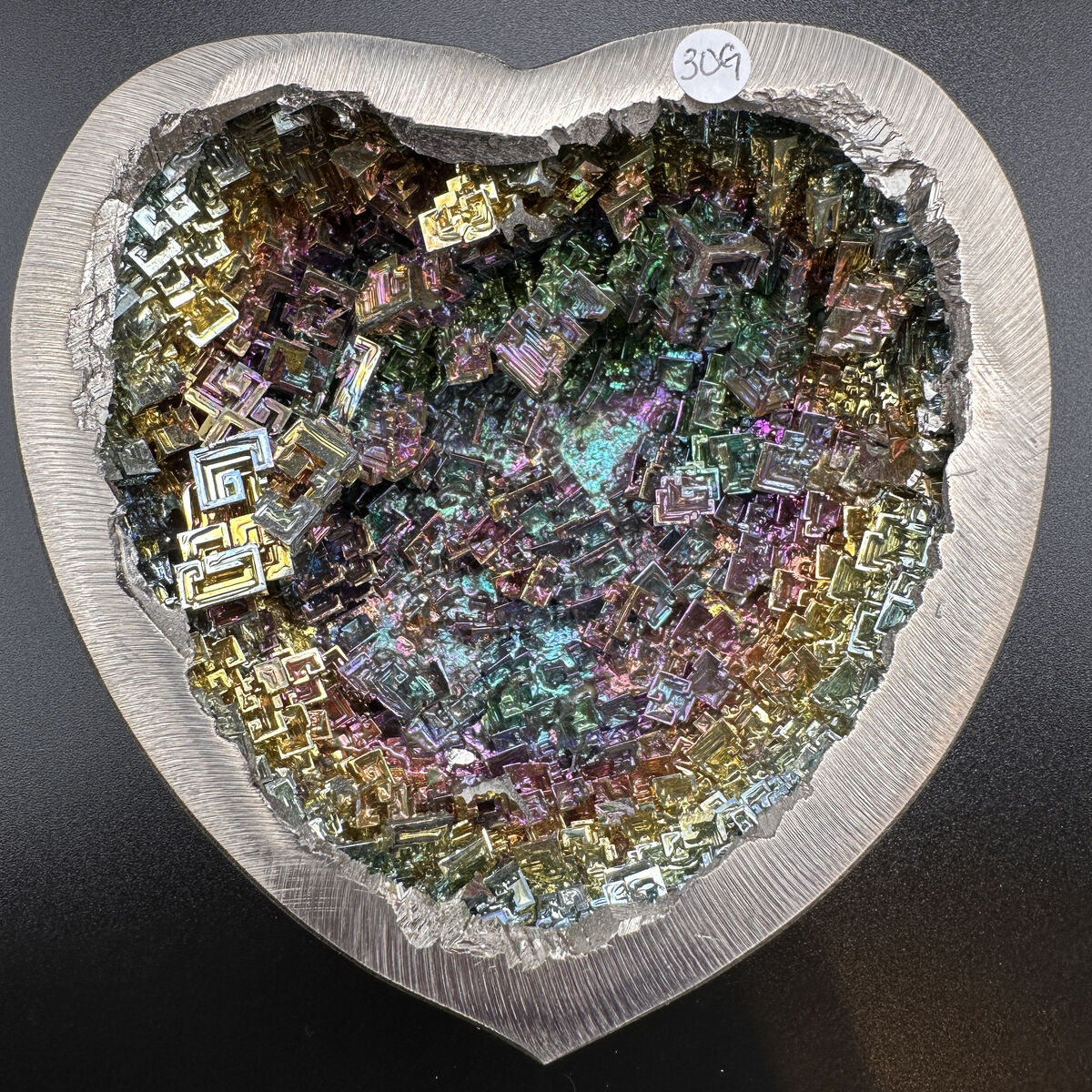 This rare metallic element naturally forms these intricate rainbow-colored patterns, creating a mesmerizing display that shifts and changes as light moves across its surface – a perfect example of how high-vibrational decor can elevate your space.