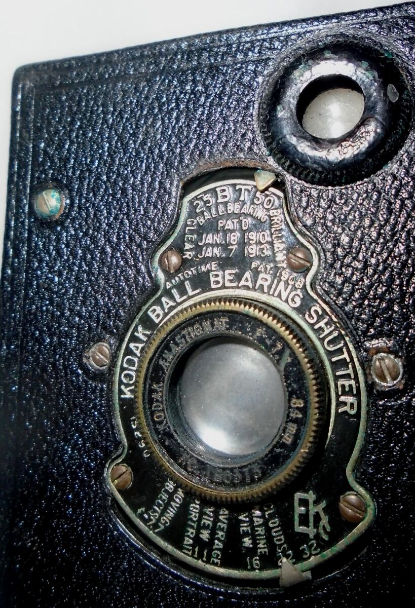 This antique Kodak camera from 1915 is a true piece of history for any photography enthusiast. With its autographic film, ball bearing shutter, and Eastman 25BT50 model, it is a must have for collectors of vintage cameras.