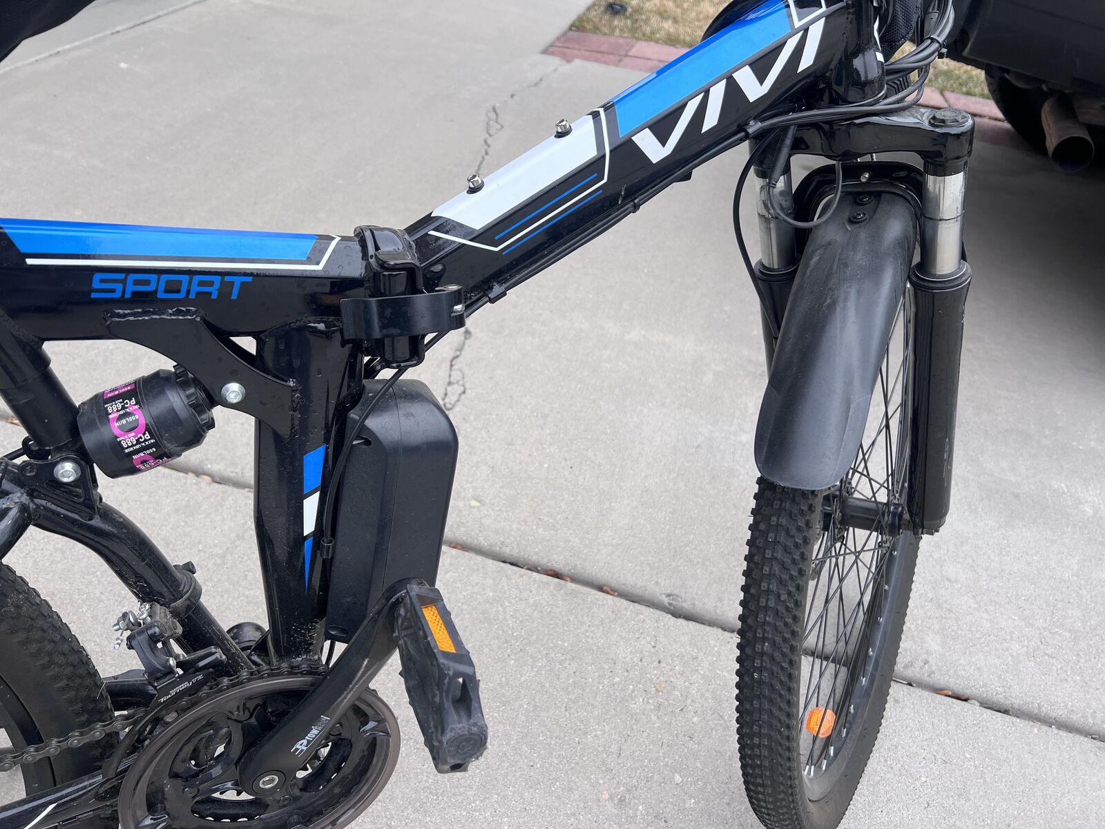 VenmoThis is the Vivi M026TGBUL, a 26-inch folding electric mountain bike designed for versatility and off-road performance. It is notably characterized by its full suspension system and compact, foldable aluminum frame.
