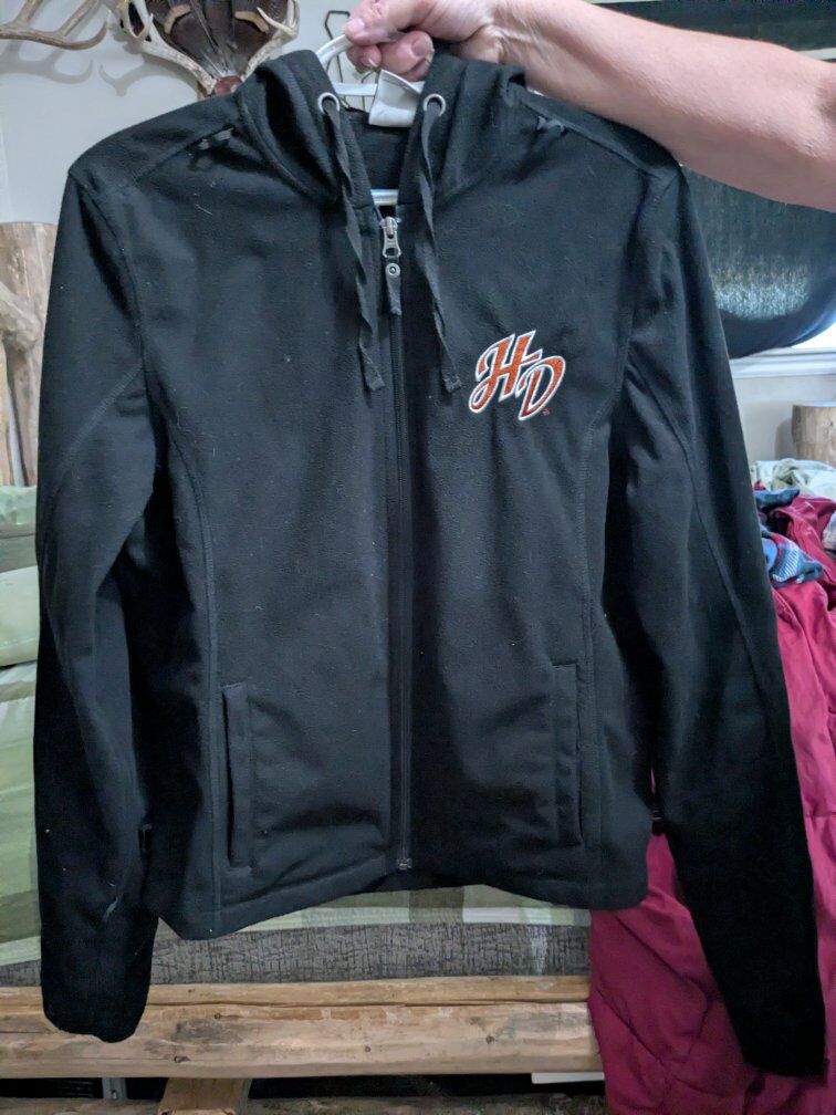 Women's large Harley Davidson jacket and hooded fleece liner.