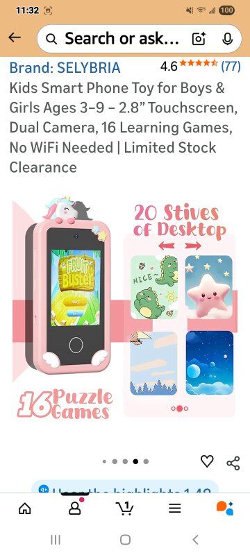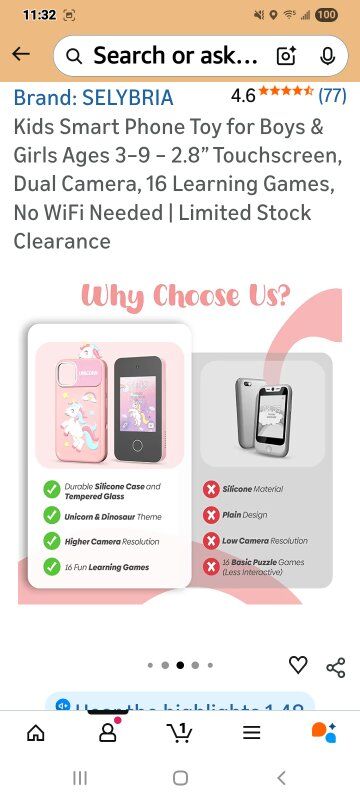 The First Smart Phone Toy for Kids Ages 3+ – With a vibrant 2.8” touchscreen, kid-friendly interface, and intuitive buttons, this smart toy introduces toddlers to technology safely—no confusing apps, no internet, just playful early learning fun. Final inventory available – once sold out, this item will not be restocked. Real Phone Look, 100% Kid-Safe Use – No Internet or WiFi Needed – Designed to look like a real smartphone but function as a safe learning toy, it includes a touchscreen and camera, but has no calls, messages, apps, or WiFi—ideal for screen-time without screen stress. Includes 16 Educational Games for Skill-Building – Pre-installed learning activities improve memory, logic, focus, and early problem-solving. Montessori-inspired game design encourages independent thinking while keeping kids happily engaged. Dual Cameras for Creative Exploration & Imaginative Play – Features front and rear cameras to capture selfies and surroundings. Kids explore the world and express themselves creatively, whether they choose the Unicorn, Dinosaur, or Superhero theme. Perfect Gift for Kids Ages 3–9 – Whether it’s a birthday, Christmas, or a surprise treat, this smart phone toy makes a delightful and educational gift choice for both boys and girls. Encourages screen-time balance, creativity, and safe play without internet. 🧒 Selybria Smart Phone Toy – Educational, Screen-Free Fun for Kids Ages 3–9 Looking for a safe and engaging tech toy? This smart pretend phone is designed to encourage creativity, logic, and learning—featuring a 2.8” touchscreen, dual cameras, 16 educational games, and music player. No WiFi needed. Works offline, making it perfect for screen-time conscious families. ️ Montessori-Inspired Toy – A Prime Pick for Tech-Loving Toddlers Recommended by parents and teachers alike, this Montessori-style smart toy supports early development in a screen-free environment. Featured in for toddlers—grab yours before it’s gone!