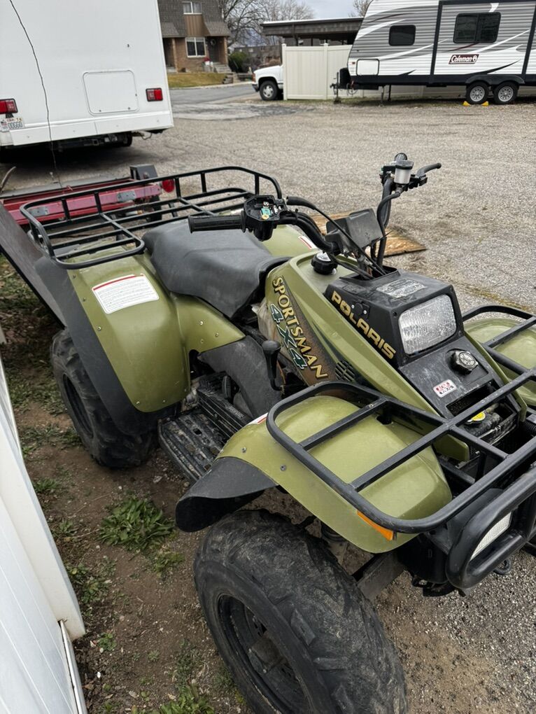 1997 Polaris Sportsman 400L 4x4. It starts up and runs, but will sometimes shut off at idle and could use a little carb tuning. Needs a new battery and has a few minor cosmetic issues (No Speedometer). Solid project or hunting/work ATV. 4x4 works, clean title in hand. OPEN TO OFFERS!