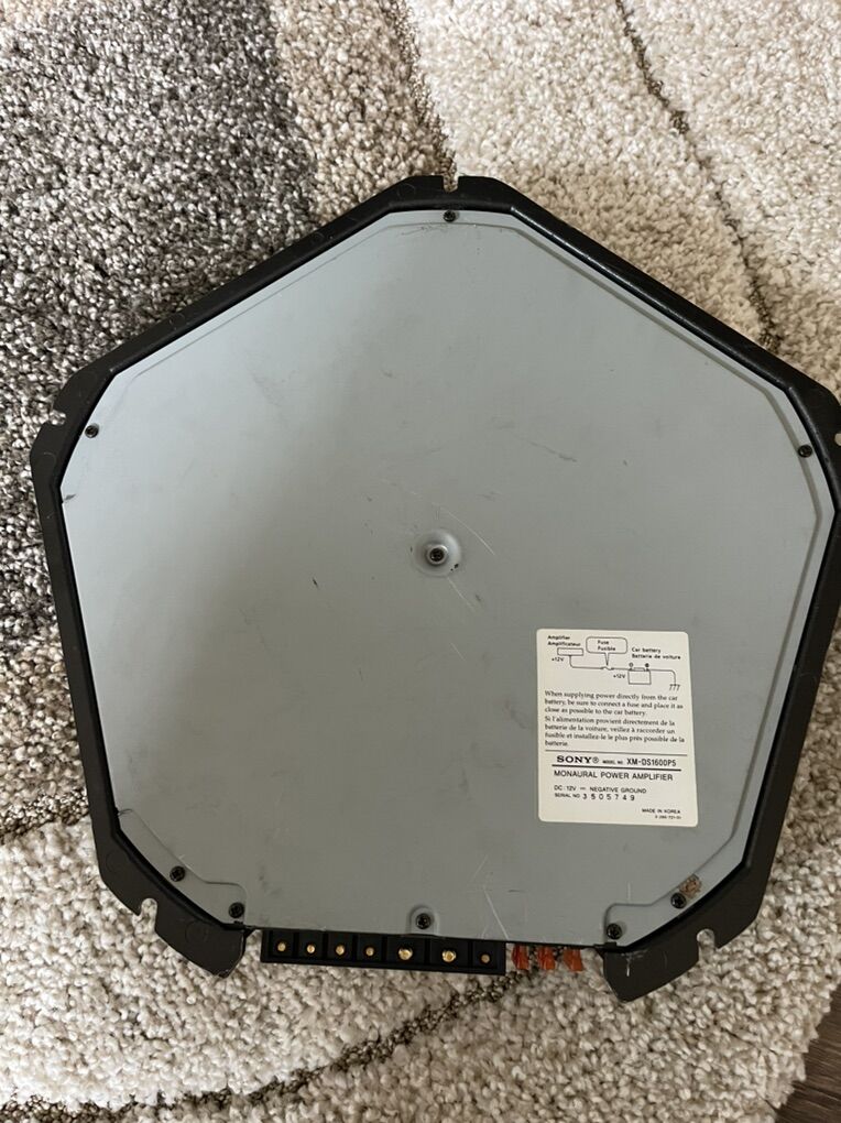 VenmoThe item is a Sony Xplod XM-DS1600P5 1-Channel Power Amplifier. It is a Class D design amplifier featuring a unique pentagonal shape. The amplifier provides 500 watts RMS x 1 at 4 ohms or 900 watts RMS x 1 at 2 ohms. It includes a variable low-pass crossover (50-300 Hz) and variable bass boost (0-10 dB at 40 Hz). The unit has both speaker- and preamp-level inputs.