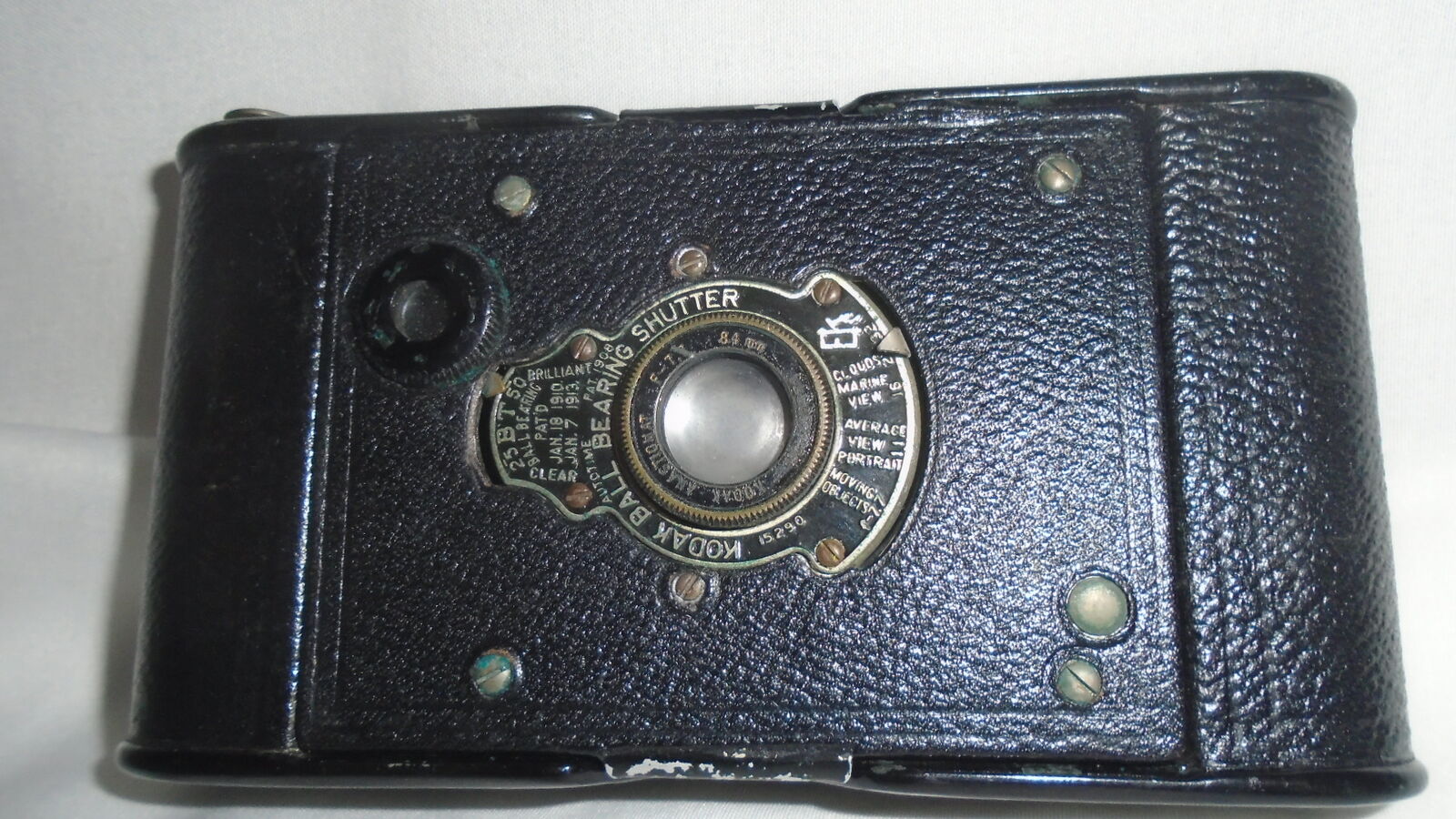 This antique Kodak camera from 1915 is a true piece of history for any photography enthusiast. With its autographic film, ball bearing shutter, and Eastman 25BT50 model, it is a must have for collectors of vintage cameras.
