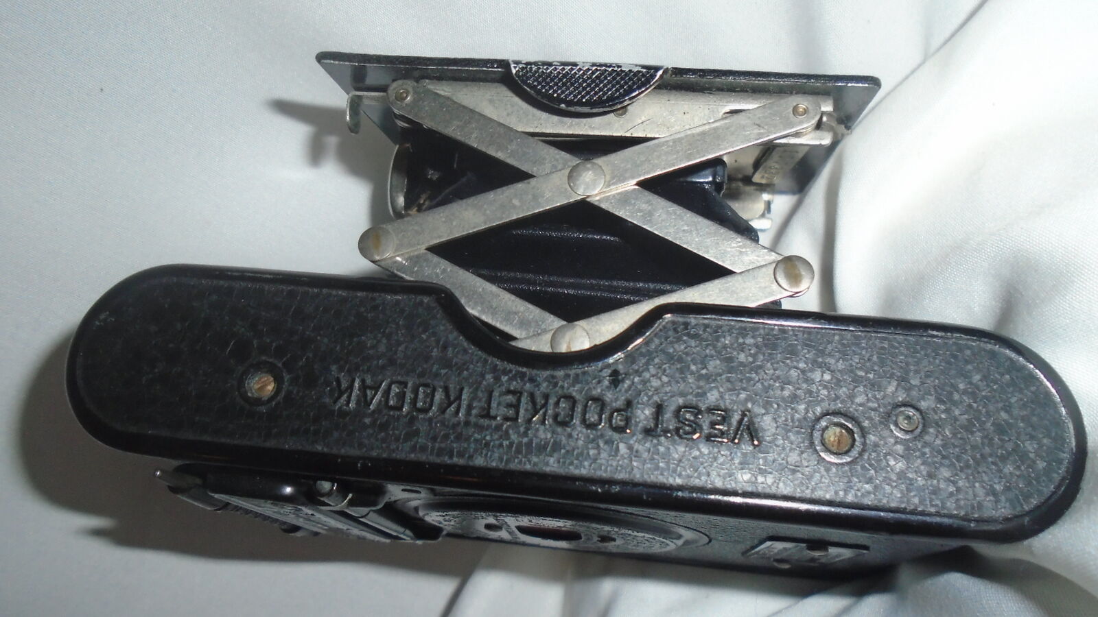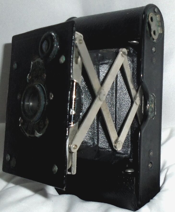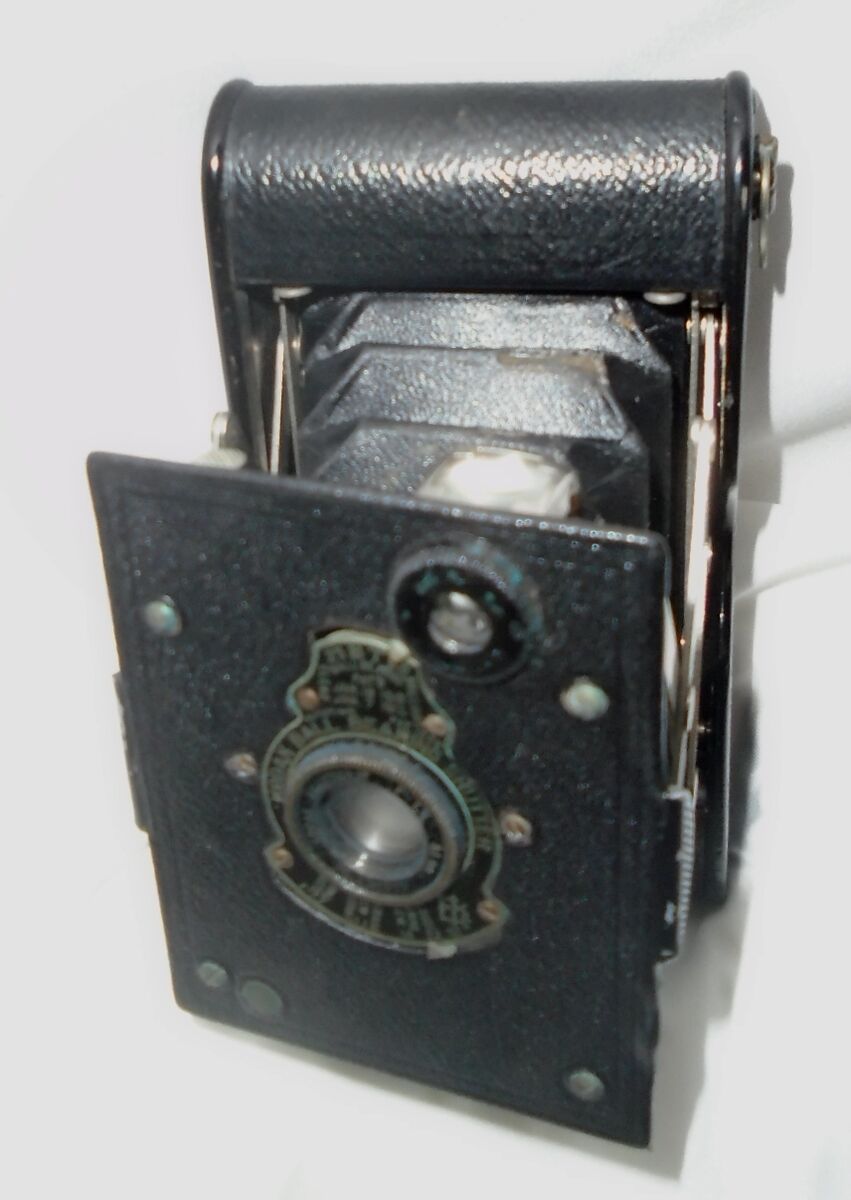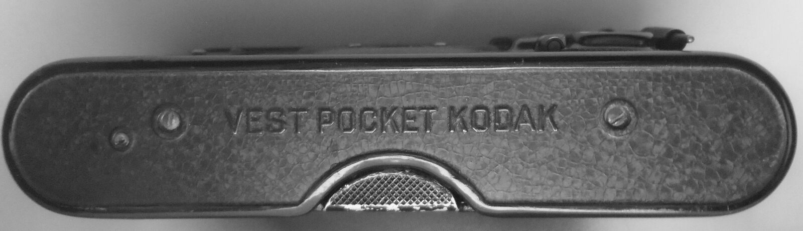 The vest Pocket Kodak is an early compact folding camera introduced in 1912 by Eastman Kodak. Designed to fit neatly into the users pockets and later heavily marketed to British, American, Australian, French, Italian, and other Allied soldiers during World War I, the vest Pocket Kodak was one of the most successful cameras of its day. As befitting a camera of this era has a very limited set of controls. The lens board has no release button as it is simply pulled open.