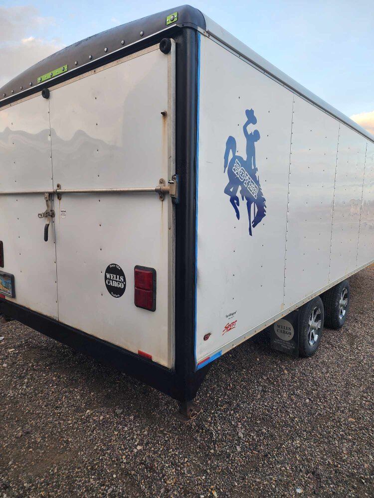 2001 Wells Cargo 25ft. Well taken care of for the year. Tires are better than 50 percent. I added the diesel heater and boot rack and helmet cabinet. All have heat piped to them. Will fit 3 164 sleds easy. Added LED lights on the rear. Trailer pulls great and is well built. Also have the white sled in the pic for sale or will make a PACKAGE DEAL. Snow is still coming. This is a sweet set up for sleds. Both are currently in Ennis Montana