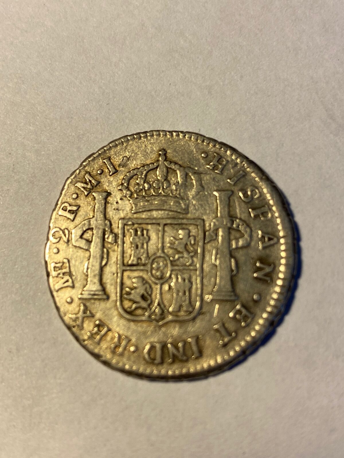 . 1785 silver Spanish Colonial 2 reales coin from Lima, Peru.