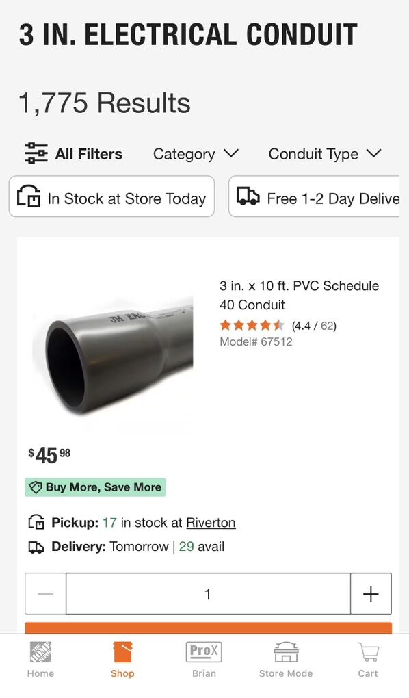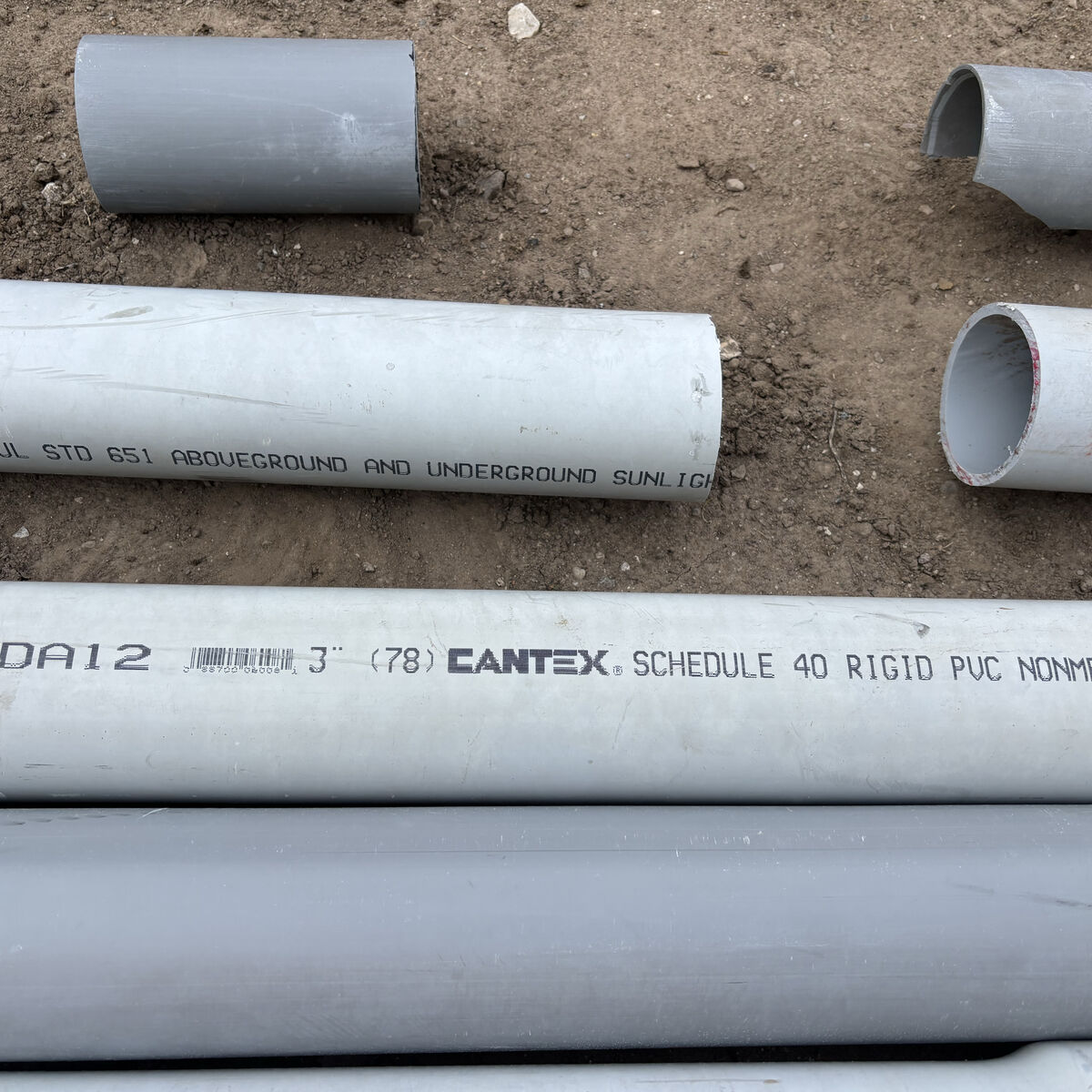 Approximately 50’ of leftover 3” electrical conduit in various lengths. Also include includes one 45° fitting. This is brand new, but has been sitting outside in the elements.