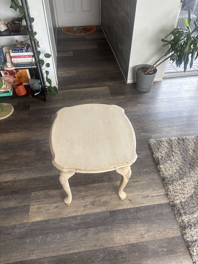 Selling this vintage cream end table that I don’t have space for anymore. Perfect for plants or a record player.
