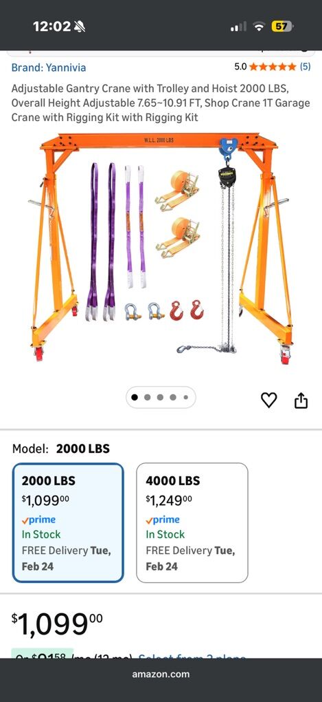 Great addition to any shop. Use it to load/ unload heavy stuff or pull engines. Cheaper than Amazon.