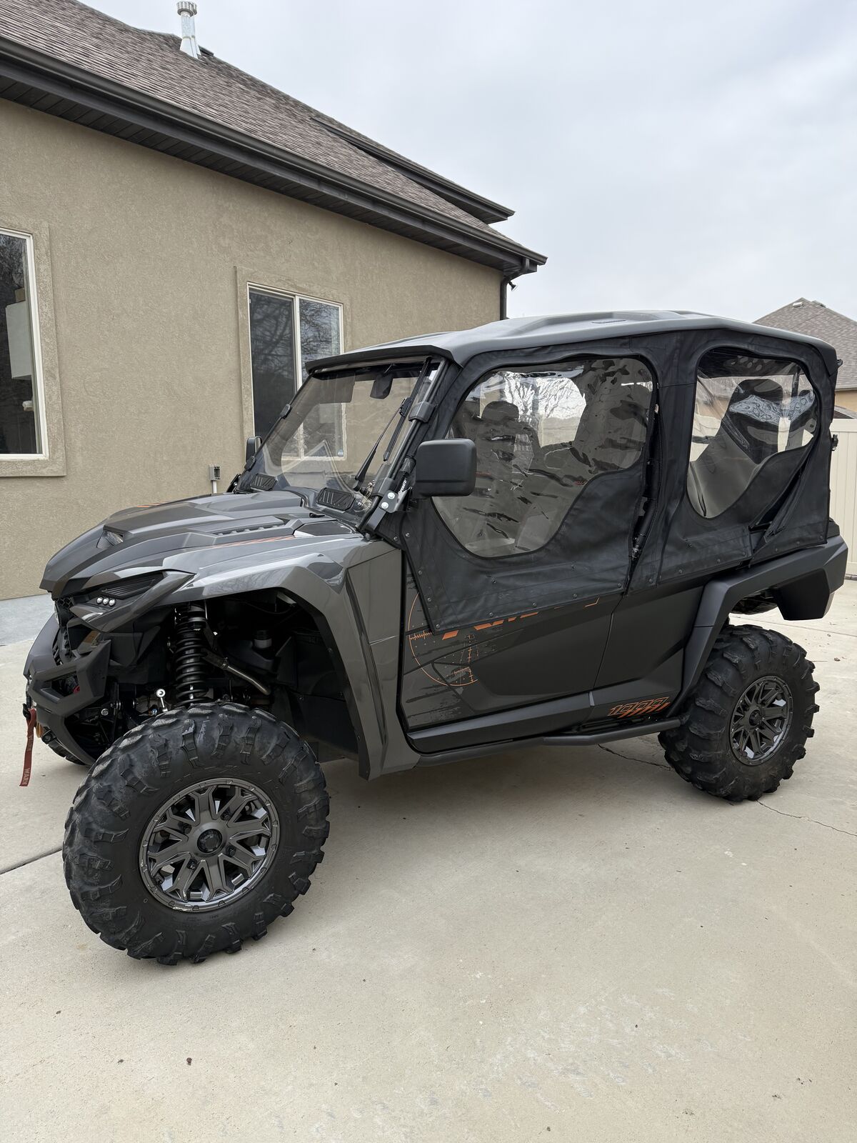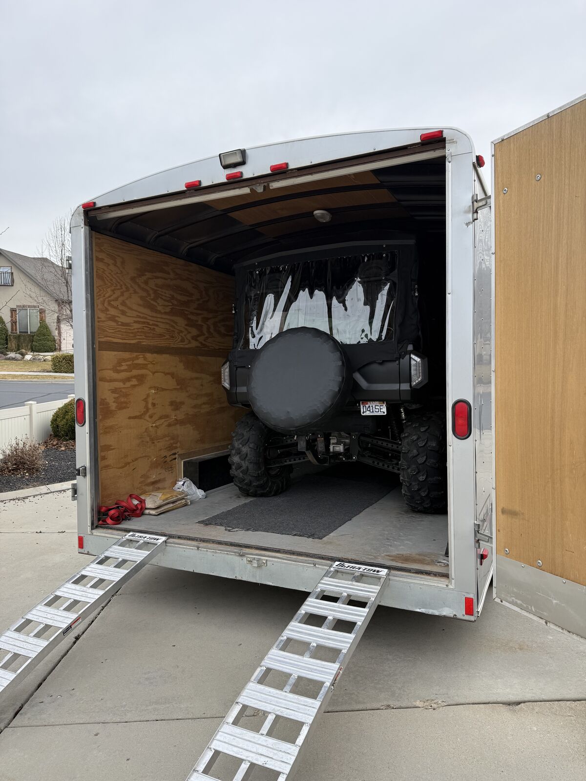 Fully loaded like new. 1766 miles with 147 hours. Street legal kit, Full soft enclosure, Heater, Side mirrors, Light bar, Rock lights, Lighted whips, Tool box, Spare tire and mount, Vented windshield and driver side wiper, Fold down visors, added USB charging ports. Will sell my 8 x 16 Hallmark enclosed trailer as a package. $17.000 for side x side, $23000 for both