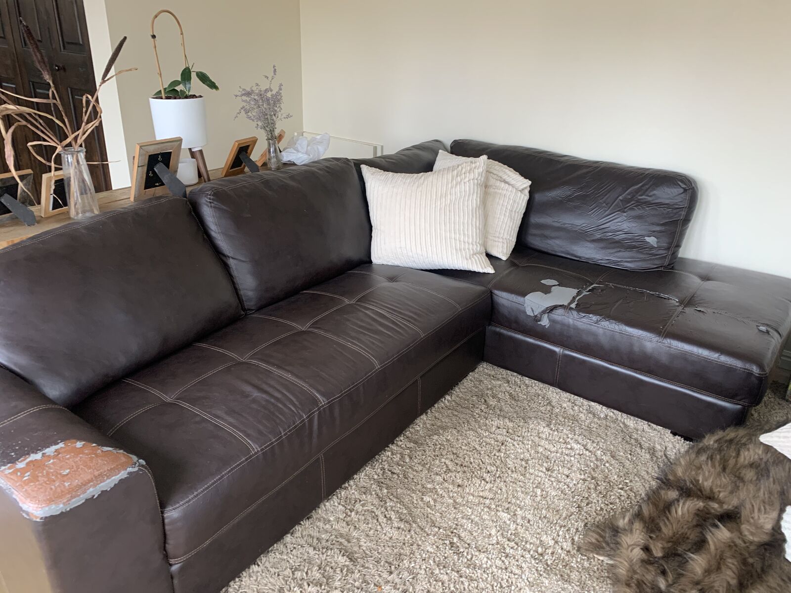 Black pleather sectional , comfortable two spots with wear, easily covered. south salt lake text 801-859-5731 for address