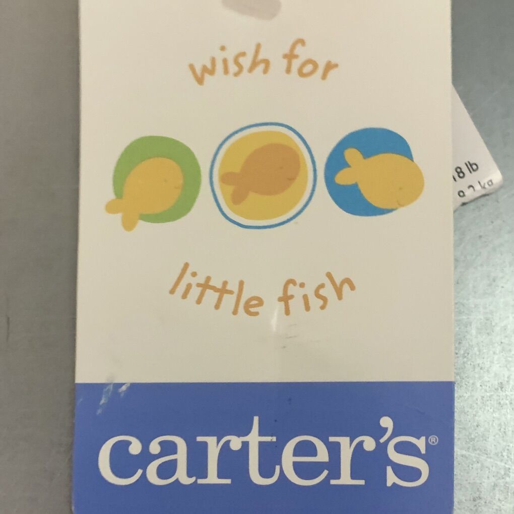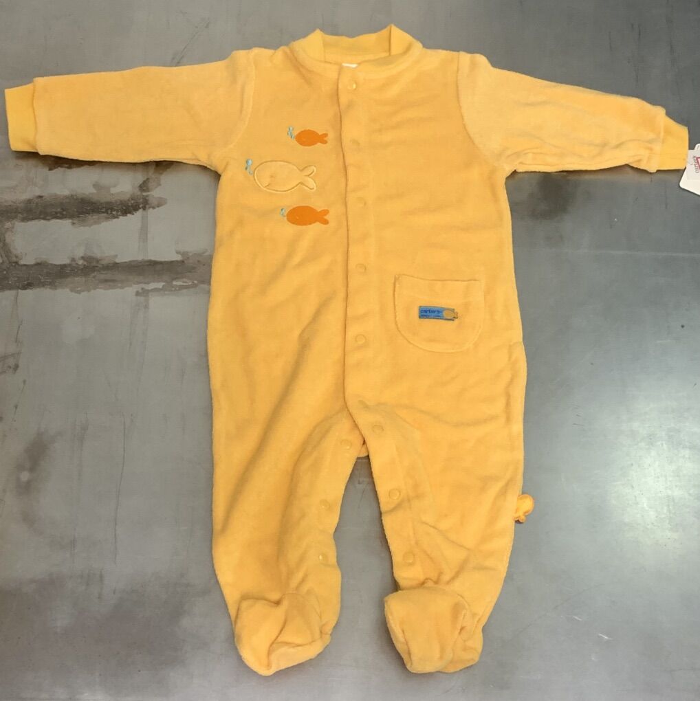 Venmo6-9 Months New with tags vintage Y2K early 2000s Carter's set from their “wish for little fish” or Go Fish design line. It includes (1) yellow/orange terry cloth footed romper (sleeper) and (1) short sleeved rib baby bodysuit onesie featuring goldfish embroidery.