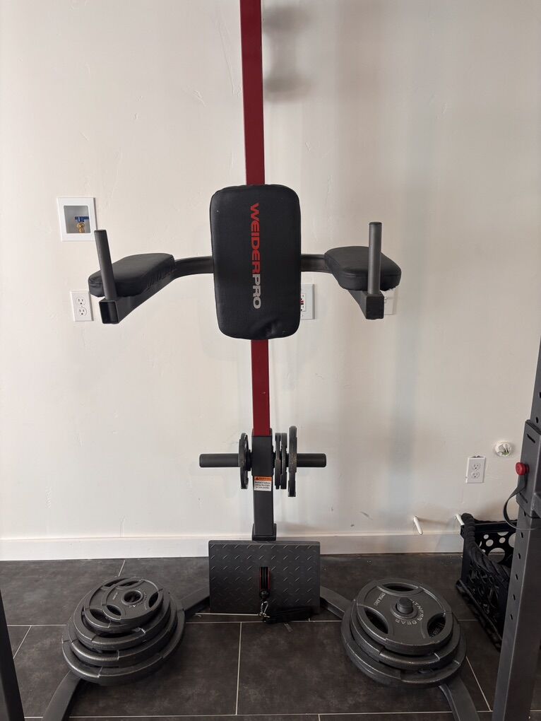 VenmoSquat rack cage with top and bottom pulley, pull-up bars, and a captain chair attachment. Bench, Olympic bar, accessories and weights included. 250lb in metal plates. Great condition. Sold as a set only. Must take down and haul away on your own. First come first serve!