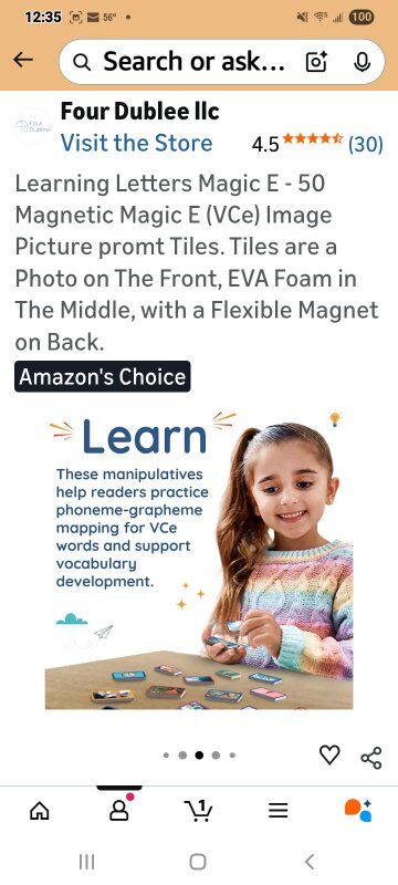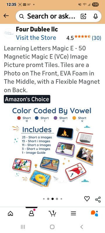 Size1.5 inches by 2.2 inches ColorMulti-colored MaterialEVA Foam, Magnet BrandFour Dublee llc Item Weight0.37 Kilograms ManufacturerFour Dublee llc VCe PHOTOS: Our VCe (magic-e) photo magnets are the perfect educational tool for learning and developing early reading and spelling skills. Real-life photo images connect students to concrete, real-life experiences. HANDS ON LEARNING: These silent-e magnets are ideal for hands-on instruction, literacy centers, speech therapy, and independent practice at home or school. Hands on learning experiences can make abstract concepts more concrete and accessible to developing readers. COLOR CODED: Conveniently color coded by long vowel with multiple magnets for repeated practice. This set comes with a useful guide showing all words/images included in the set. Magic-e words are teacher must haves and are learning resources for the science of reading, vocabulary builder, and Montessori learning. SAFE AND DURABLE: Great for classroom or home, the soft and EVA foam material is highly durable and safe for children. The strong magnets allow for easy display on any magnetic surface. The colorful design and clear photography make these tiles a fun and engaging way to learn. EASY STORAGE: Each picture prompt tile measures 1.5 inches by 2.2 inches and are .25 inches thick. Slim and compact, this set comes in a durable storage box making homeschool and classroom organization a snap.
