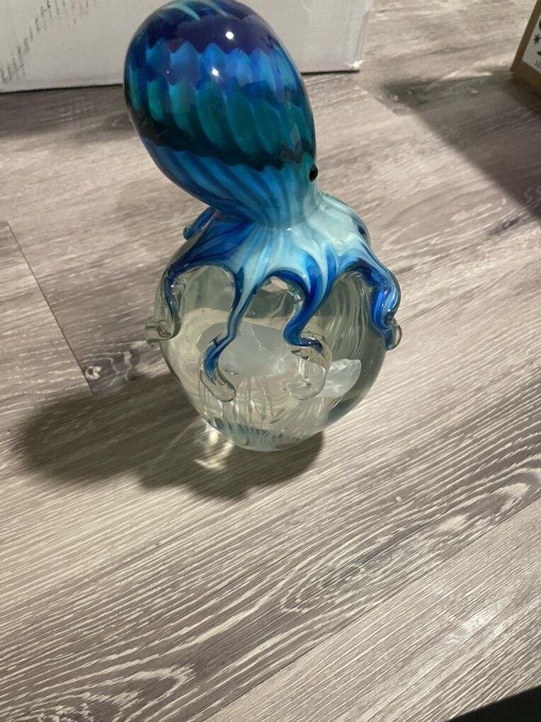 VenmoBlown glass octopus with bubble jelly fish in the glass below the octopus. Very pretty when placed in a color light stand