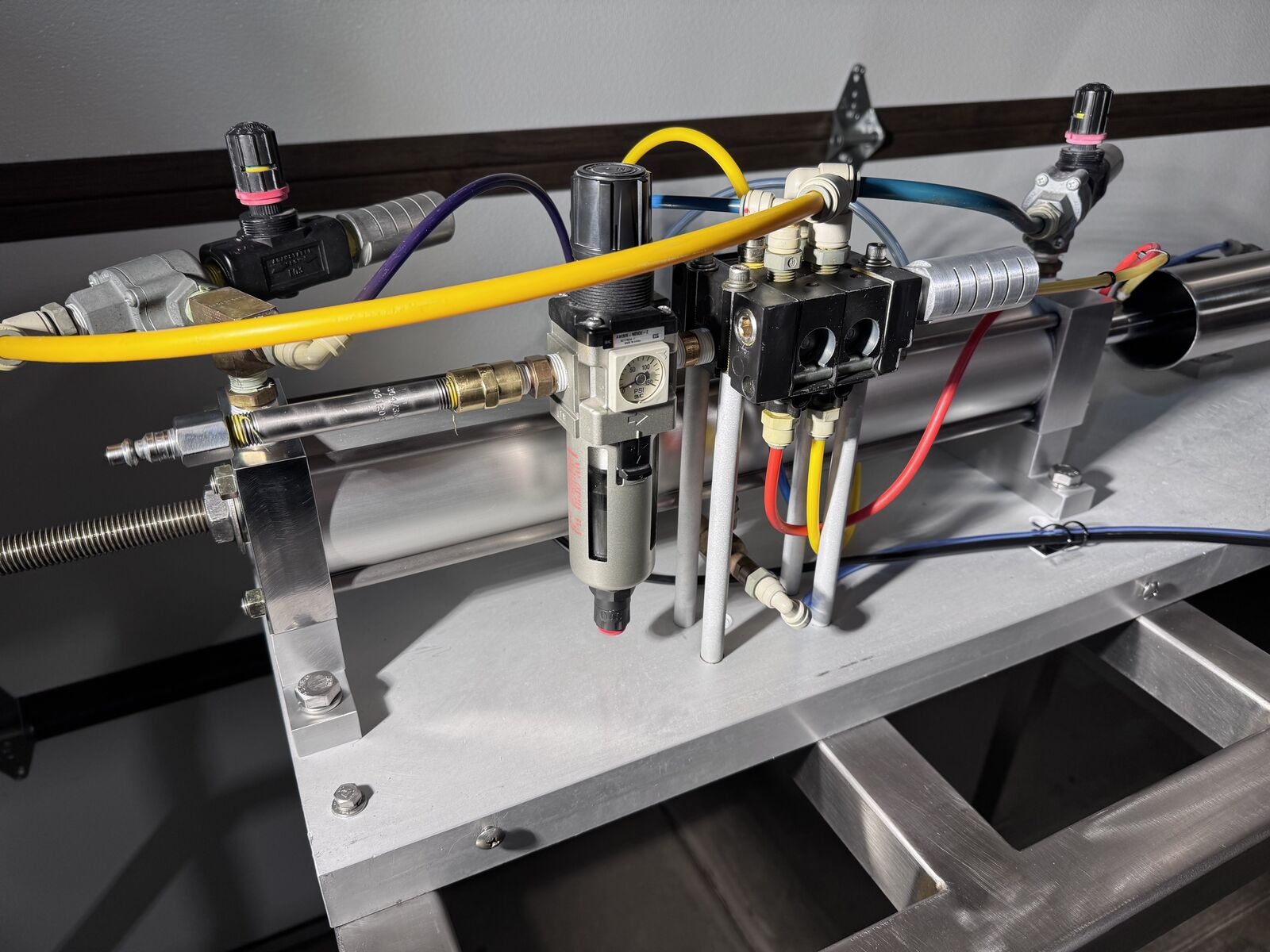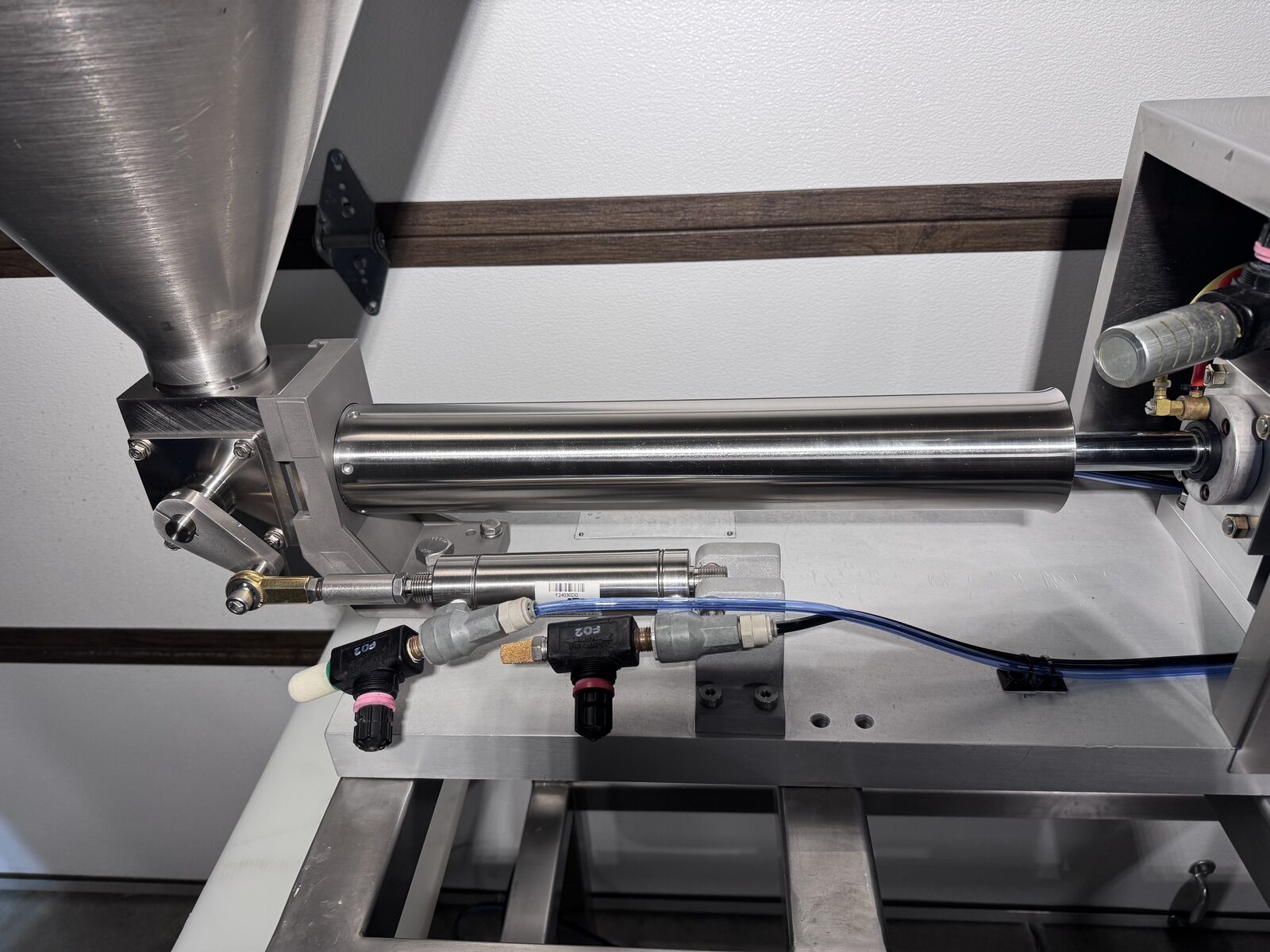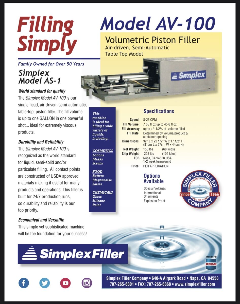 Simplex piston filler for sale in amazing condition came from a beverage manufacturer. Everything works and ready to start filling. Comes with 3 different sizes of change parts and a adapter to plug a hose in the top instead of the hopper. Also comes with a stainless steel frame withe casters to move around. Brand new foot switch/ valve air cylinder/ new main air cylinder seals/ pack of coalescent filters. MADE in the USA and fully supported on parts and technical support from the manufacturer. In the pictures it shows specs from the manufacturer and available options.