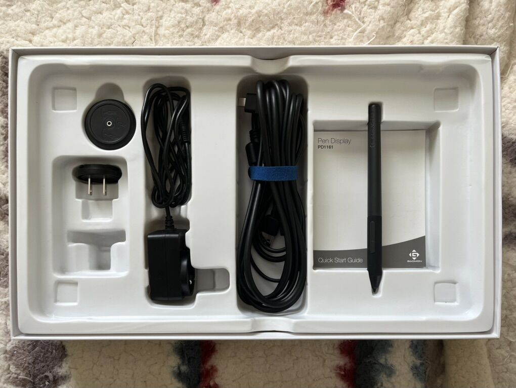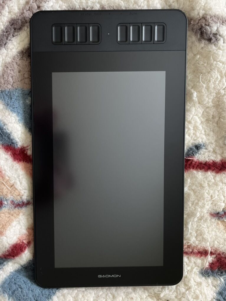VenmoThis is a Gaomon Pen Display PD1161. It acts as a drawing tablet for those who like to draw digitally, coming with a stylus that doesn’t need to be charged and interchangeable pen nibs. It can be connected to a computer or laptop, and has an online downloadable file for its system. It’s a great tablet and overall I would have used it more if I could have gotten over the difference of drawing on paper vs on a screen. It does have a few scratches, (the third photo shows them), but they don’t inhibit anything or even really show while the tablet is on. Also, I am missing the glove and European socket connector, but other than that, it comes with everything. 75$ OBO Thanks for looking!