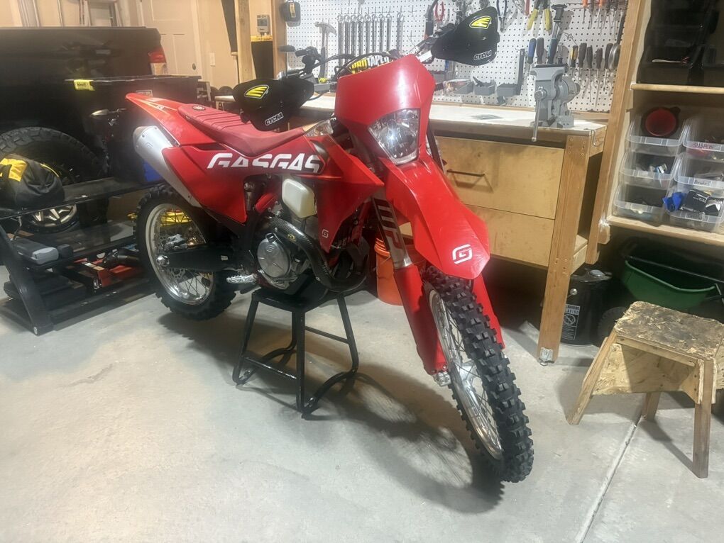 This is an absolute beast of a single track bike it is capable of anything you can throw at it. It is also fully street legal. I set it up with single track in mind. Here’s a list of the upgrades. tubeless set up cheater tire seat concepts, low element seat, frame guards, swing arm, protectors, tidy tail kit from taco Moto. Cycra hand guards pro taper bars, Ricky Carmichael Bend. Skid plate Pipe guard